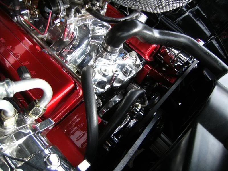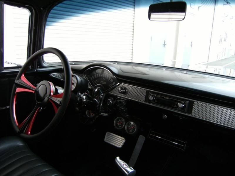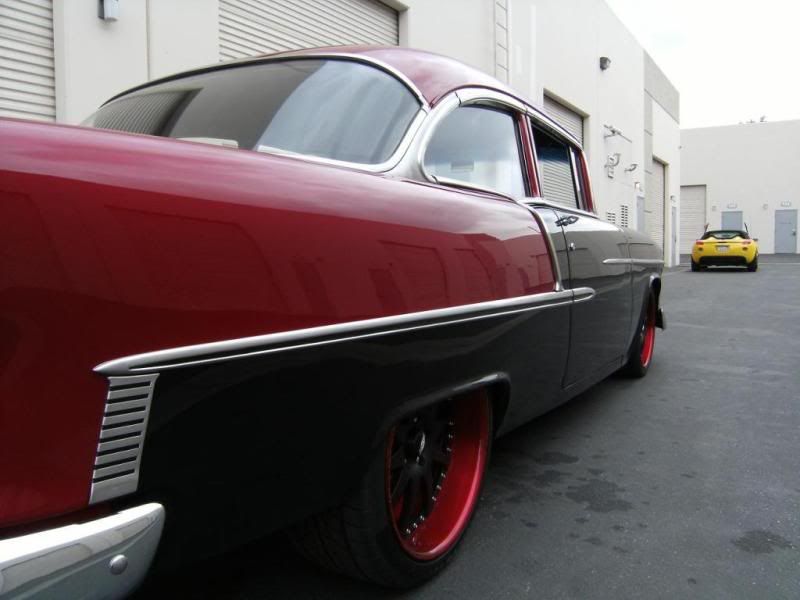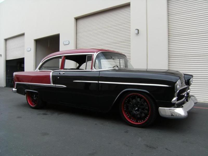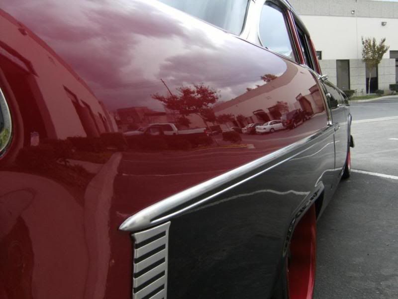 Motor is a 350 with a Th400 trans. Some of the hightlights: Billet Specialties valve covers, and pulley system, all powder coated Candy Red to match the car. Billet wire looms Johnson's Rod Shop custom air cleaner, painted black to match the car. MSD billet distributor, 6al box, plug wires, and coil Chrome pulleys Chrome altenator Chrome power steering pump Chrome A/C compressor New V-belts Alluminum Radiator, with fan shroud Optima Yellow top battery with billet hold down in the trunk Coated mid length headers Flowmaster delta 40 mufflers New exhaust tips Billet Fesler Hood Hinges anodized black Interior: New ACC carpet Black vinyl doors and seats Seats are out of a 64 Impala. I get compliments on those a lot. Billet Specialties Steering wheel, powder coated red and black to match car Brushed Aluminum pedals B&M floor shifter Stock speedo and instrument cluster (all works) Auto Meter guages (all work) Carpeted trunk Pioneer CD player with speakers in the doors and rear deck lid. (Sounds great) Exterior: BMW black over custom House of Kolors candy apple red. Brushed Stainless One piece smooth bumper from Danchuck. (very cool) Nomad station wagon rear bumper. (brings the license plate down from the trunk) New tail light lenses (all red) New third brake light/ trunk handle Black stock grill, with custom grill emblem Shaved side mirros Shaved and peaked hood (all done in metal) Shaved Bel Air badges, and Bel Air lower rocker trim. (Still have the trim and it goes with the car) Suspension: New Heidts 2" drop spindles Tubular upper control arms 13" cross drilled and slotted Baer brakes on all four corners Stock rear, with 3:36 gears Inboard leaf springs to allow for 10" wide wheel 19x8 and 20x10 color match Rushforth Rated X wheels. Nitto 245 wide tires front, and 275 wide tires rear. Rides nice. New front sway bar 605 steering box Some more Info: I'll be the first to admit the car is not perfect if it were I'd be asking 55K, but it shows VERY well, and is a very, VERY, nice driver. I know the wheels may be a little extreme and not for everyone, which is why I'm selling the car with the option of any of the wheels we sell. I do have in stock a set of Billet Specialties Rails in polished in 18s and 20s and a set of 18" Foose Chrome wheels too, but any of the wheels Driverz offers can be built as replacements for the red and black Rushforths on it now, including of course other Rushforth Wheels. I'd prefer to either 18's all the way around, or a 19/20 combo as I already have tires in those sizes. I'll leave that up to you. The paint is fresh, and brand new, and I give it a 8 out of 10. It's not concourse de elegance, but it is very nice. The cut and buff and quality of the paint is awesome. When you see the car, you feel like you could stick your hand in it. I think the photos show that well. All the gaps are very nice, but the trunk could be aligned a little better. Its a little tight on the right side but I'm picky. The interior is also an 8 out of 10. There is a small 1" tear in the lower part of the rear side panel, close to the carpet, other than that, nice and black. Trunk is nicely carpeted with just the battery and pioneer amp mounted in the back of the trunk. No clutter. Motor runs strong. Fun to drive, and when you get on it, it goes, I mean goes. My wife and I love this car, but her hours were cut until she finishes school in April, which is more important, and it has been particularly slow this winter season. We have it up for 37K/obo. We're entertaining all offers, and partial trades. Call me and we can talk more about it. Toll Free at the shop is 866-694-5940. My cell phone is 714-915-5533. Hope to talk to you soon. http://i37.photobucket.com/albums/e9...ntquarter2.jpg http://i37.photobucket.com/albums/e9...earquarter.jpg http://i37.photobucket.com/albums/e9...sengerside.jpg http://i37.photobucket.com/albums/e9..._stainless.jpg http://i37.photobucket.com/albums/e9...eringwheel.jpg |