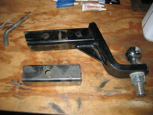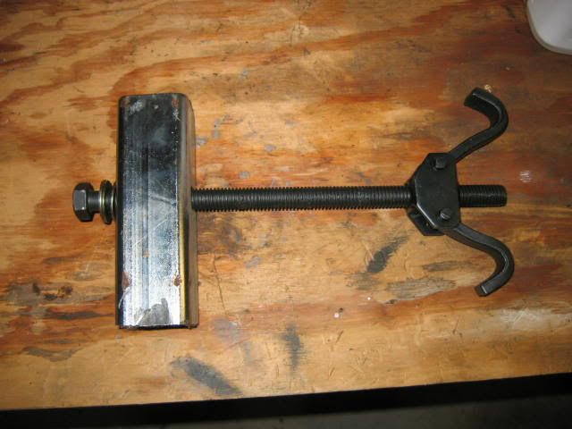 Ok here's a couple pix of the receiver hitch cut down and the spring compressor with it set-up. It doesn't look like much but it's much safer to use when installing coil springs.