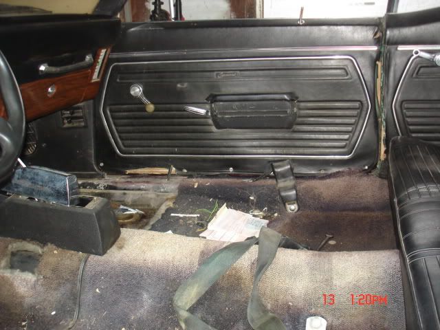 I am really into the trans am/streetfighter type cars. The car currently has a 327 that is bored .060 over and has probably only 100-200 miles on it. First things first I am going to have to get a full floor pan in in, it looks like it has been worked on before and it was some really crappy work. the passenger seat floor pan is crinkled up pretty good as well as the driveshaft tunnel, so it looks like it got hit pretty good somewhere along the line. It is also going to need some rockers as well as most other body panels, although looks will not be first priority. I have a t56 and a moser for it that will go in after I get some other issues resolved. I will keep you guys updated Ryan http://i732.photobucket.com/albums/w...69leftside.jpg http://i732.photobucket.com/albums/w...9frontview.jpg http://i732.photobucket.com/albums/w...e/DSC03365.jpg http://i732.photobucket.com/albums/w...e/DSC03409.jpg http://i732.photobucket.com/albums/w...e/DSC03411.jpg |