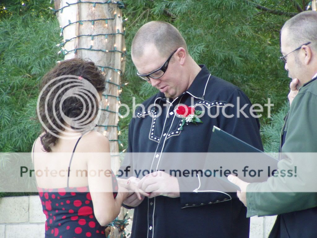 Here is the lovely bride, Shannon, and her father: http://i338.photobucket.com/albums/n...a/P1010177.jpg Here is the happy couple..... Looks like Rodger just realized what was about to happen: http://i338.photobucket.com/albums/n...a/P1010178.jpg The happy couple: http://i338.photobucket.com/albums/n...a/P1010185.jpg http://i338.photobucket.com/albums/n...a/P1010187.jpg ..... Announcing RODGER & SHANNON LEE: http://i338.photobucket.com/albums/n...a/P1010196.jpg --Eric |