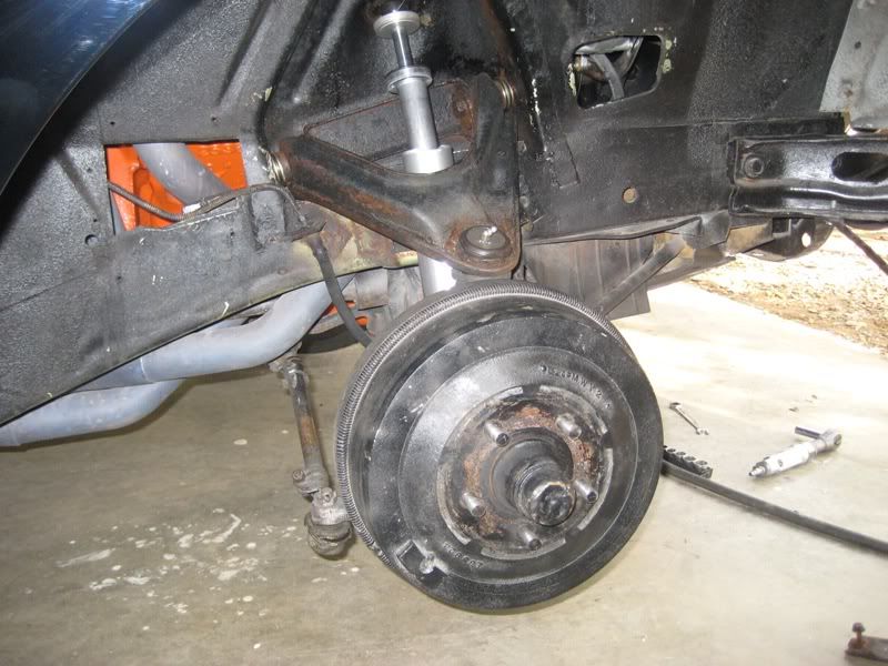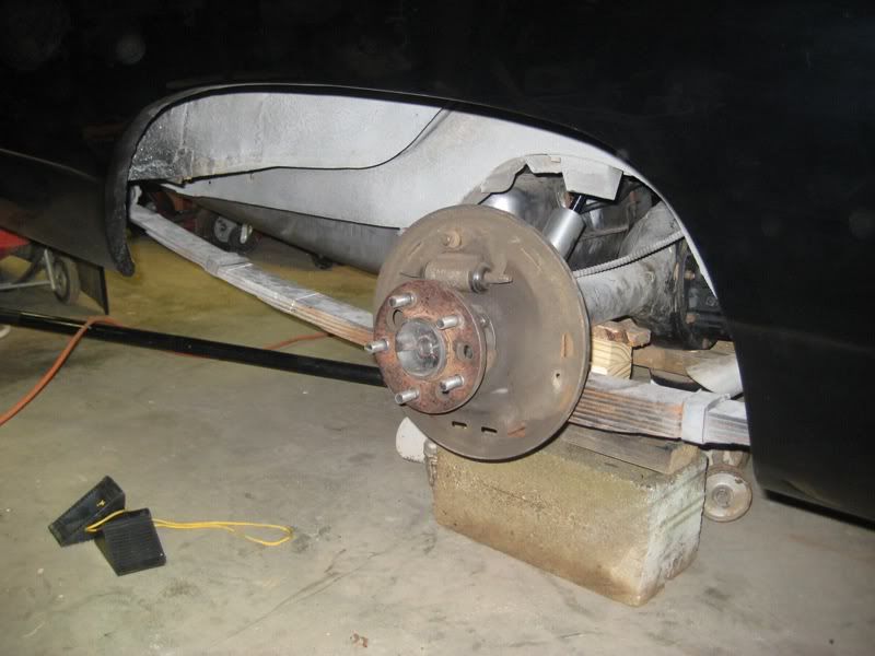 The stock 275/15s were a very tight fit.......it took a ton of effort to get the passenger side out. http://i304.photobucket.com/albums/n...Rebuild039.jpg Lots of clearance huh? http://i304.photobucket.com/albums/n...Rebuild014.jpg A picture of the stock setup with the drums already removed. So that's where I'm currently sitting as of this afternoon. I'm waiting on new bearings & Wilwood backing plates to be pressed onto my rear axle shafts so that I can reinstall them this evening and finish mounting the 4-piston rear Wilwoods. I need to finish fabricating new ss brake lines to the rear calipers and also the new parking brake cables. I've also added a 3/4" Addco rear sway bar which I'll get pictures of later. Once all that's completed (hopefully by tomorrow), I'll install my new Wilwood aluminum M/C and get everything plumbed and bled out. Before I go I want to say that I think you guys are really going to dig what I'm doing in terms of wheels & tires for the car. I spent a TON of time on the phone with Jason at Driver's Inc and we've come up with something that I don't think I've seen before. Hopefully I'll have some completed pictures to show off before the week is up! :cheers: |