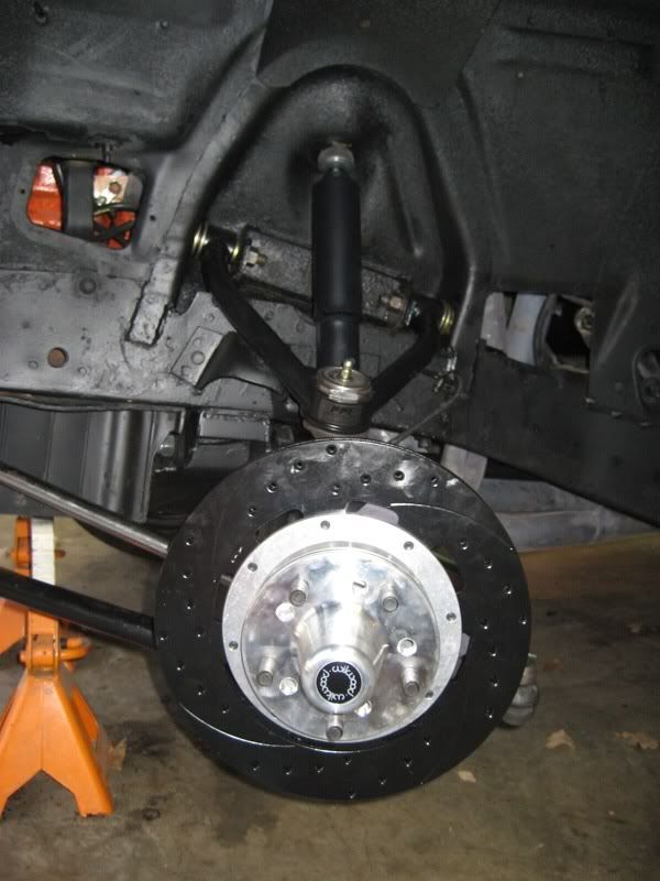 In terms of the suspension I looked at just about anything that could be done.......completely replacing the K-member with one of RMS' Alter-Kation setups, replacing the existing setup with an Air-Ride or simply picking specific components to upgrade the Mopar torsion-bar setup. What I finally decided is that I'd like to keep the cars front suspension "stock" looking but with upgraded components. I purchased a set of 1.10" diameter torsion bars, tubular UCAs, aluminum strut rods, thicker 11/16" tie-rod ends, idler arms, 1-1/8" front and 3/4" rear sway bar from Firm Feel incorporated. I also purchased new LCAs from Cap Auto products to replace the stock ones that were clearly bent. http://i304.photobucket.com/albums/n...Rebuild010.jpg Here's a pic of the new components installed. The only piece that remains stock is the spindle. I also decided that while I had everything apart I'd apply a coat or two of new flat black paint to the wheel wells to make it look better. http://i304.photobucket.com/albums/n...Rebuild012.jpg A better pic of the new tubular LCA. http://i304.photobucket.com/albums/n...Rebuild043.jpg Rear view of the setup. What I soon discovered is that I think the torsion bar setup is truly unique in it's design but it's also a complete pain to install. As I'm sure is the case with everyone else......now that I've done it several times (a few due to my screw ups) I'm actually pretty good at it. Not that I want to do it again. At this point it was time to decide what to do in terms of brakes. Obviously I didn't want to keep the stock drums since I'd be upgrading the wheels as well, plus I wanted something that could bring a big B-body to a stop safely. As such, I called Frank at Prodigy and purchased a complete Wilwood setup consisting of 12.2" 6-piston fronts and 12.2" 4-piston rears with drilled and slotted rotors. http://i304.photobucket.com/albums/n...Rebuild046.jpg Here's a pic of the new hubs and rotors installed. I think the black rotor looks killer with the color scheme of the car (more on that later). http://i304.photobucket.com/albums/n...Rebuild047.jpg Close up of the new rotor & hub. |