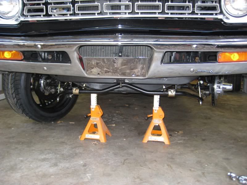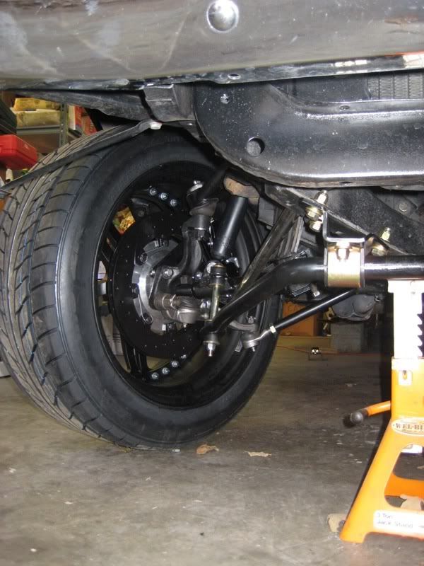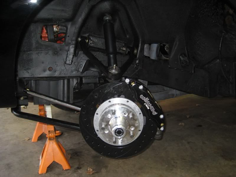 Picture of the 6-piston Wilwood front caliper installed. http://i304.photobucket.com/albums/n...Rebuild049.jpg Close up. http://i304.photobucket.com/albums/n...Rebuild051.jpg From the front of the car looking at the complete new front setup. http://i304.photobucket.com/albums/n...Rebuild050.jpg New 1-1/8" Firm Feel front sway bar. |