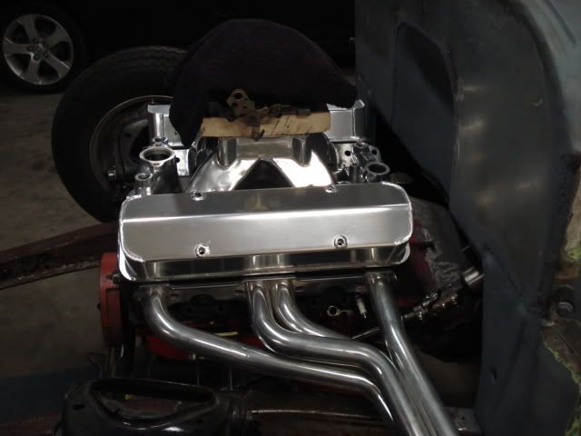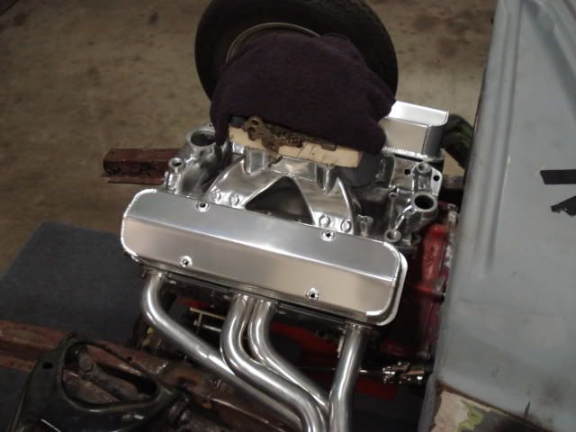 I just finished smoothing the Engine and got it back to the machine shop to have the short block assembled, The block is body color! heres a few of it in mock up with some of the old parts on it still for fitment and to check clearances.