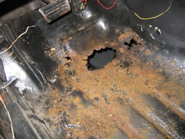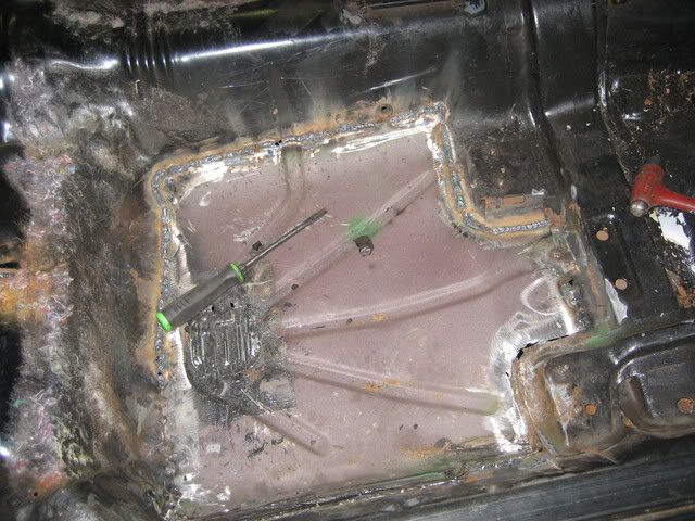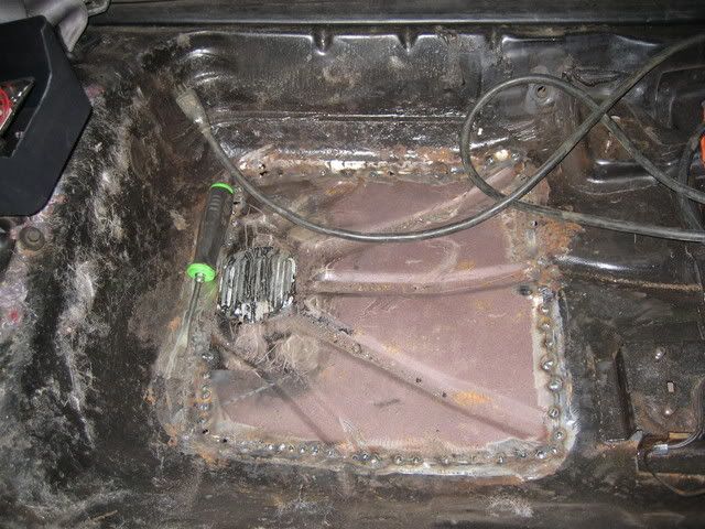So last week, we started on the floors. there were 3 main rust spots that needed to be patched up. i round a near perfect 87 cutlass in a junkyard, and payed $300 for front back right and left floorboards in good condition.
