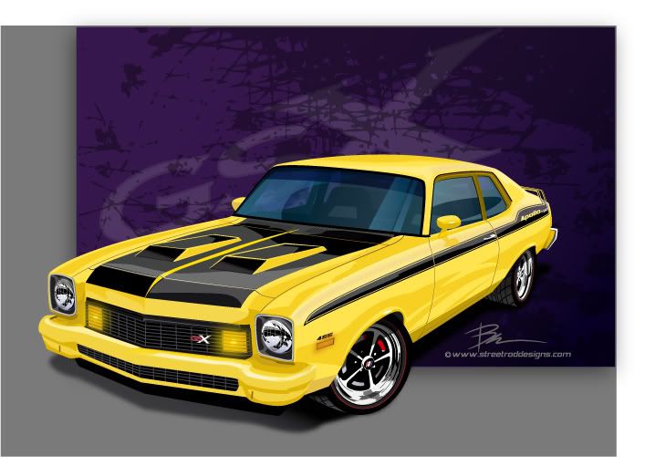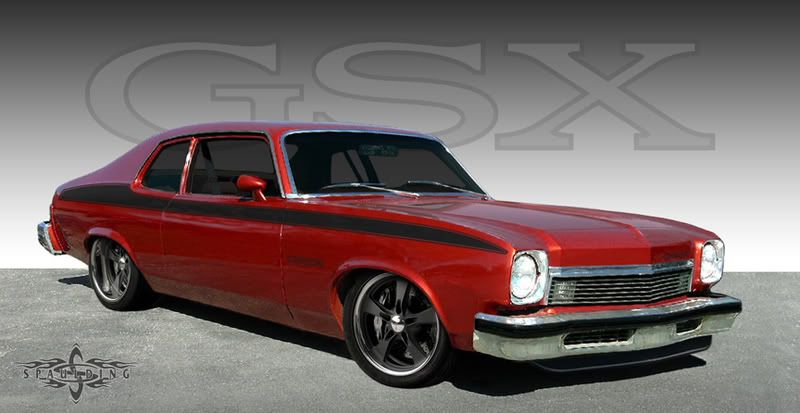 For this month I decided to do something different, at least for me. I've always loved Novas and have owned several over the years. I currently own both a 73 and 74, and call me nuts but I plan on owning at least one for the rest of my life. I've drawn plenty of Novas over the years. One day I also would like to own one of each of the X-Body cousins. I've had this one in my head for sometime now and this month's contest finally got it on paper. I'd really like to build this one... I'm all about surprises and cars that appear one way on the surface but have a whole different personality underneath. For this one I cloned a 70/71 Buick GSX, very possibly one of the coolest muscle cars Detroit let loose. Body mods on the Apollo are fairly simple, relating back to the GSX with a touch of their own personality. Painted front bumper, blacked out trim, GS style spoiler, "Apollo GSX" graphics, shaved factory emblems and dual functional hood scoops. What's inside is where the fun begins. Punched out 455 stuffed with goodies and topped with an Offy low-rise intake sporting dual quads with a goal of over 550lbs of torque to shred the rear meats. Back that by a TKO600 and disc shod 9" sporting 3.55 gears. Hydroformed aftermarket subframe with air ride and Vette brakes house the motor and handle the curves. Street duty includes Wheel Vintiques 17x8 Billet Buick wheels shod with low pro redlines. Interior includes aftermarket buckets in black and grey and an 8 pt. Pro Street roll cage to keep things stiff and safe. Fun for cruising, occasional track shredding, and lots of showing. Thanks for looking... http://i286.photobucket.com/albums/l.../AGSXfinal.jpg |