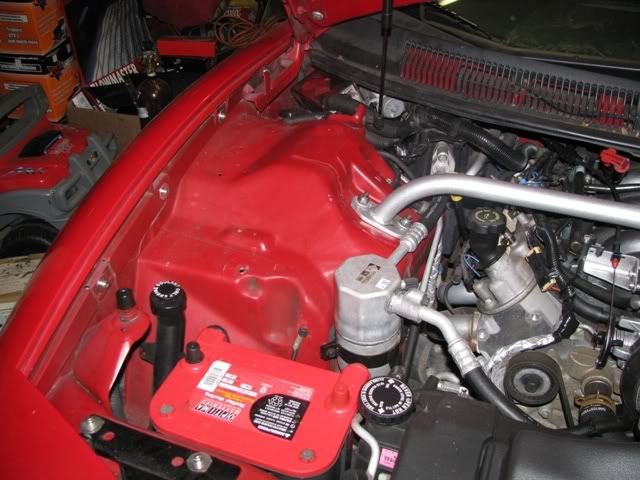 So, I started out by working on some things under the hood. I relocated the hood release cable, the wires on the passenger fender, and the TCS module.
