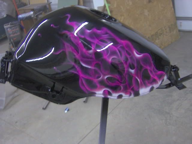 This is my latest job 97 Ninja for a girl, Black with Pink Pearl and Kandy Pink flames all HOK.Just cleared these last night, still have 5 more pcs to do.