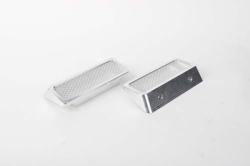 We have been asked by many to design and build these so here they are. They bolt up very cool with the bolts at the bottom so you cant see them when you stand behind the car, they look like the bolt on from the back. We also have smoked lens for these so if you want to anodize them black they will look killer. I think these are very nice for what it took to design them. This is a very hard part to cut and its two parts with over 7 actions each side.