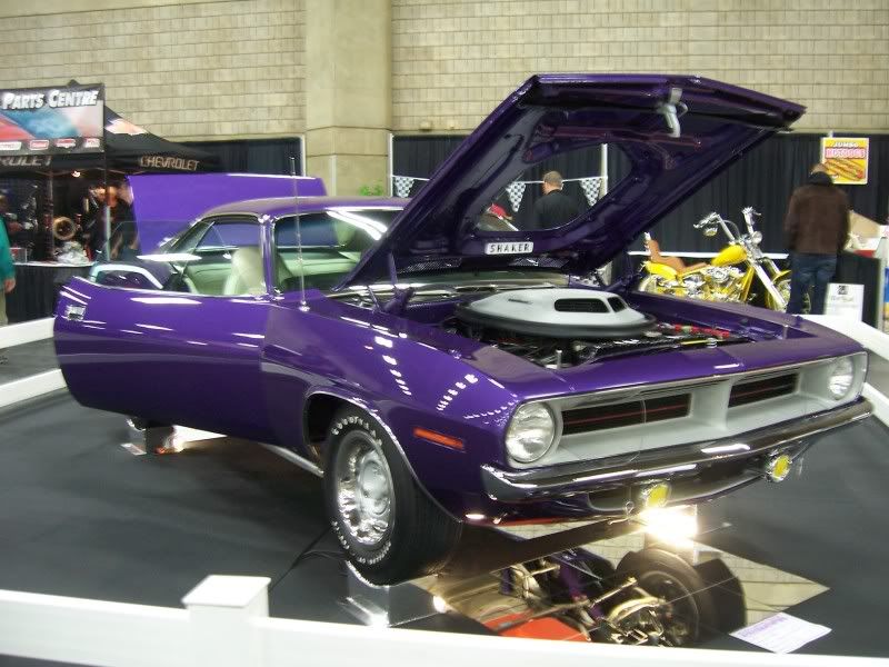 The Plum Crazy Hemi 'Cuda was done by Chris and the guys at Heighton Restorations who did the OneLap car (you can actually see the car in some of my early construction pictures). I helped a bit with the final assembly on the car (ok - I put the tail lights and trunk lock in) and I tracked down the NOS sway bar hardware. Awesome car. :thumbsup: |