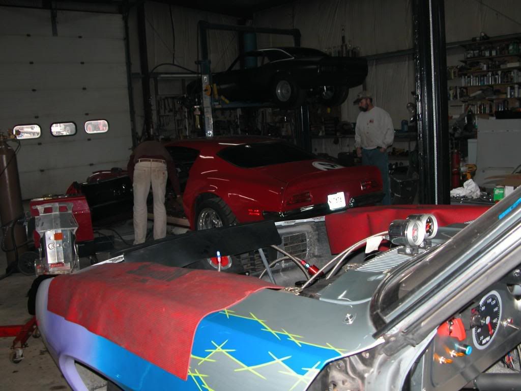 It's supposed to be at the painters now. They were working on the front sway bar mounting and trans tunnel mods when I last saw it and said they were going to install the engine for the last time and send it to the painters the next day. The restoration bodywork was done up in canada somewhere if I remember correctly. I'll get some more info on the car.