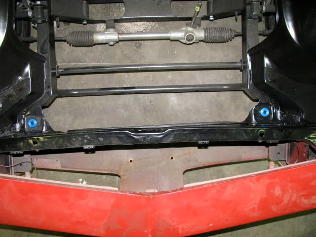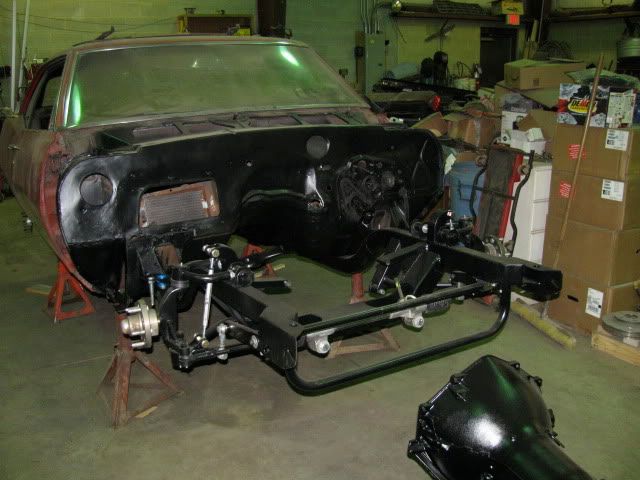 The following is purely observational and only intended to offer advice, my intention is not to "bash" a competitors product. Looking at the frame rails of this subframe, they appear to be made from 2"x3" tubing which is standard chassis building frame size (as long as it is .120" or thicker) and used on 90% of the aftermarket front subframes out there. I doubt seriously that the rails are the problem. The main crossmember joining the two outer rails looks to be made from 1/4" formed plate. It appears to be completely open on the bottom which would allow the frame to be very weak torsionally. The only other cross tube is the front bar which is way to small (looks to be 1.5" or possibly 1.625") to offer much additional rigidity. Firewall bars will improve the stock or any aftermarket front subframe but I don't think this is the only solution. I agree with Dave that boxing the main crossmember should be the prime concern and would help tremendously. It would be really simple and inexpensive too. Anything you can do to tie the two rails together better will help and if you can get some gussets or better yet X-bracing tying them together you be be on par with other subframes out there.