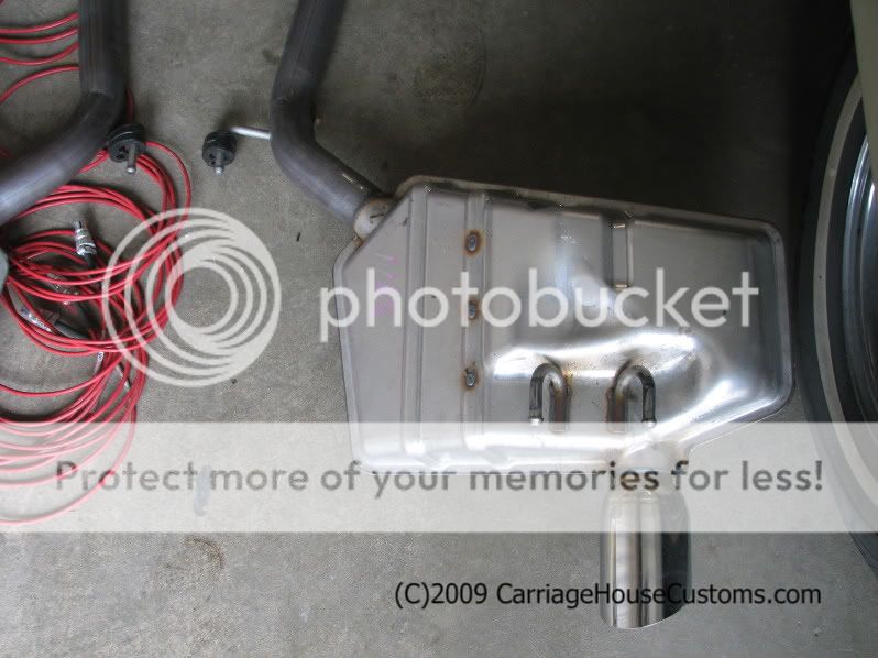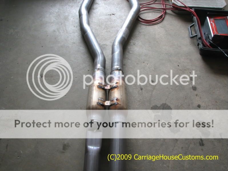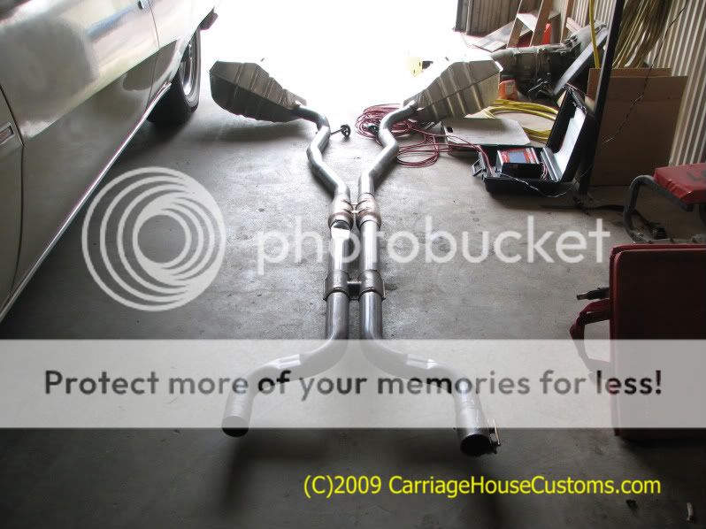 At 3,840# with 3/4 load of fuel, you can see this girl needed to go to Weight-Watchers.. Gradually she's shaping up and will be one very wicked contender on the track. Here's some other shots of the exhaust system and components; The whole 9 yards - This system weighs in at 75# not including the manifolds and cats; http://i420.photobucket.com/albums/p...S/IMG_3234.jpg The Balance Tube (H-Pipe) http://i420.photobucket.com/albums/p...S/IMG_3238.jpg The Resonators http://i420.photobucket.com/albums/p...S/IMG_3237.jpg Big-Mufflers http://i420.photobucket.com/albums/p...S/IMG_3236.jpg Cast Iron Exhaust manifolds (although they look like they'd flow well) http://i420.photobucket.com/albums/p...S/IMG_3457.jpg Replacement Doug Thorley headers (5# lighter than the iron manifolds) http://i420.photobucket.com/albums/p...S/IMG_3387.jpg http://i420.photobucket.com/albums/p...S/IMG_3384.jpg |