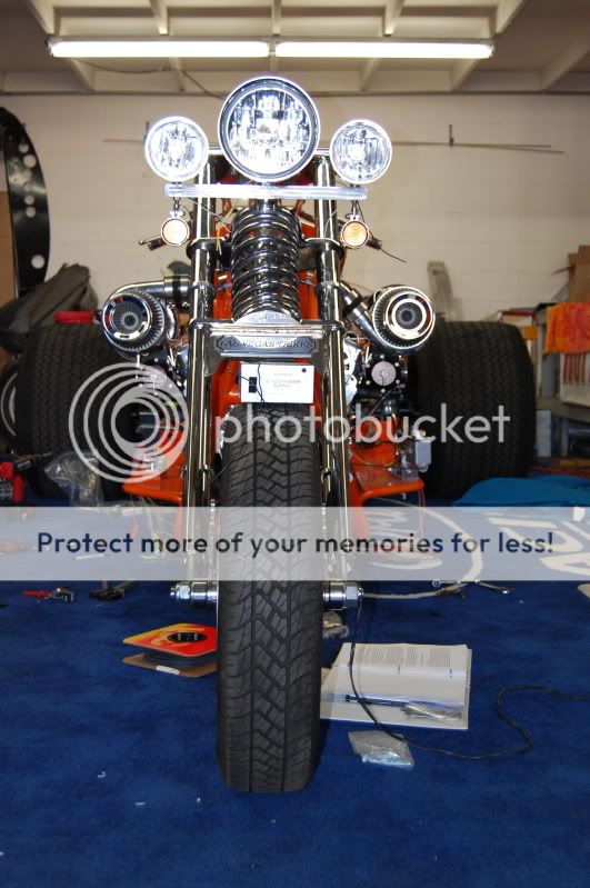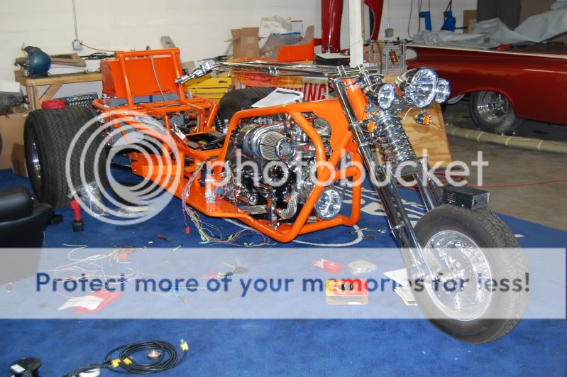 technically I suppose "trike" would be the preferred nomenclature for this creation. But that is really just a triviality, since pro-touring is all about adding modern conveniences to one's antiquated form of transportation, what you are about to see loosely falls within the parameters. It is a pro-touring tricycle in the sense that it eschews the use of two feet pushing a set of pedals for, two turbos, a V8, 700r4 and a 9," all pushing some seriously ginormous rear rubber. Some say not even Chuck Norris is man enough to ride this monster, (although I'm sure that is debatable), and that when it is done it will be a three seater. One seat for the driver and the other two seats for the driver's cajones. Regardless, In the world of trikes, I imagine this beast has few contemporaries. Ladies and gentlemen of the internet, I present to you...well, I'm not really sure what: http://i366.photobucket.com/albums/o...A/DSC_0981.jpg http://i366.photobucket.com/albums/o...A/DSC_0982.jpg http://i366.photobucket.com/albums/o...A/DSC_0984.jpg It is really hard to picture how massive this thing is through several pictures, but it is seriously big. I mean bigger than my Camaro big, the wheel base is probably bigger that an F150. Matt |