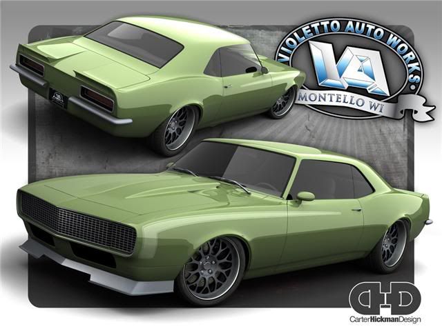 Well I've gone a complete different direction from my first thread of ''Touble'' my 68 Camaro so I might as well start a new one. It started out with all Wayne Dues front and rear suspension and quickly decided it was a little outdated and I wanted to try to keep up with everyone so I went with a complete setup from Jakes Rod Shop with his c6 style front subframe and rear torque arm. I need to thank Wegner Automotive Research in Markesan, W.I. for building me a 427 inch lsx powerplant. Also I would like to thank everyone at the Ring Brothers as you can see I'm getting some cool new carbon fiber body panels that they should be selling in the near future. And I cant forget about Carter Hickmans kick ass rendering! I will be posting build pics in the near future but for now here's a little something for your viewing pleasure.