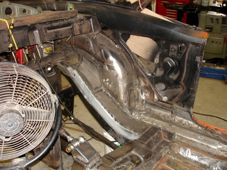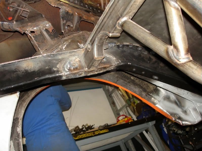 http://i974.photobucket.com/albums/a...ssetwide-1.jpg And the view from the inside. At left there is a square tubing that is a temporary tack weld. This holds the cage in place while the feet are "boxed". http://i974.photobucket.com/albums/a...tGusset2-1.jpg Another view. http://i974.photobucket.com/albums/a...aro/Roof-1.jpg And a bigger perspective. http://i974.photobucket.com/albums/a...Cagewide-1.jpg The work area. http://i974.photobucket.com/albums/a...amaro008-1.jpg And now that is up to date. Mark, cheezer |
