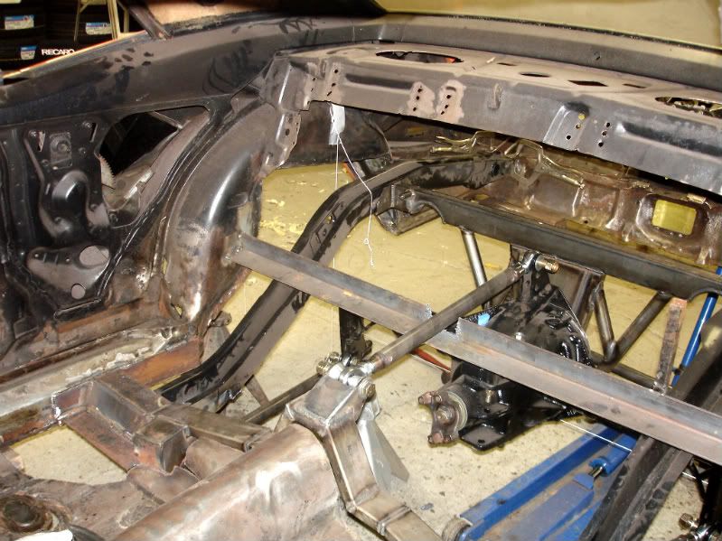 I like your idea for welding the top of the cage. And as far as the stance goes, it is a race car and I for one would not expect it to sit too low like some of the street cars. Mine will not sit as low as others either because it will be driven on the street on a regular basis and the last thing I want is to worry about speed bumps and pot holes taking out my oil pan or exhaust.
