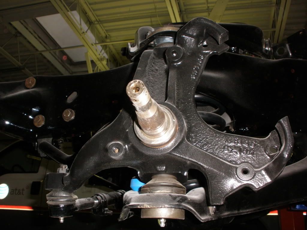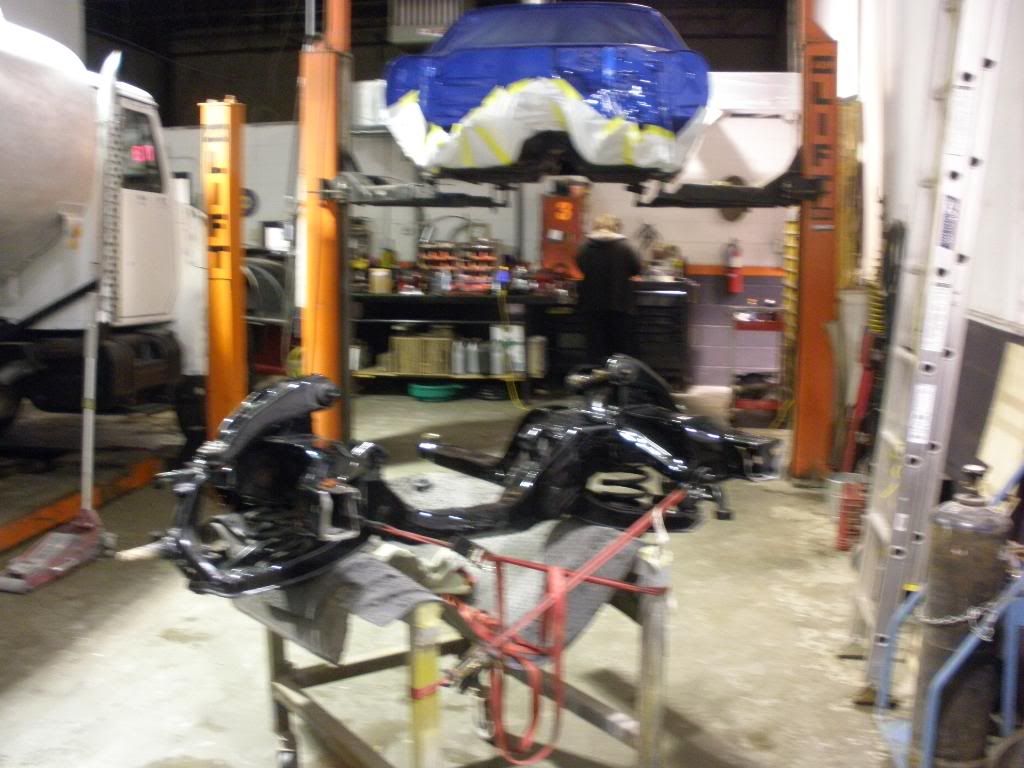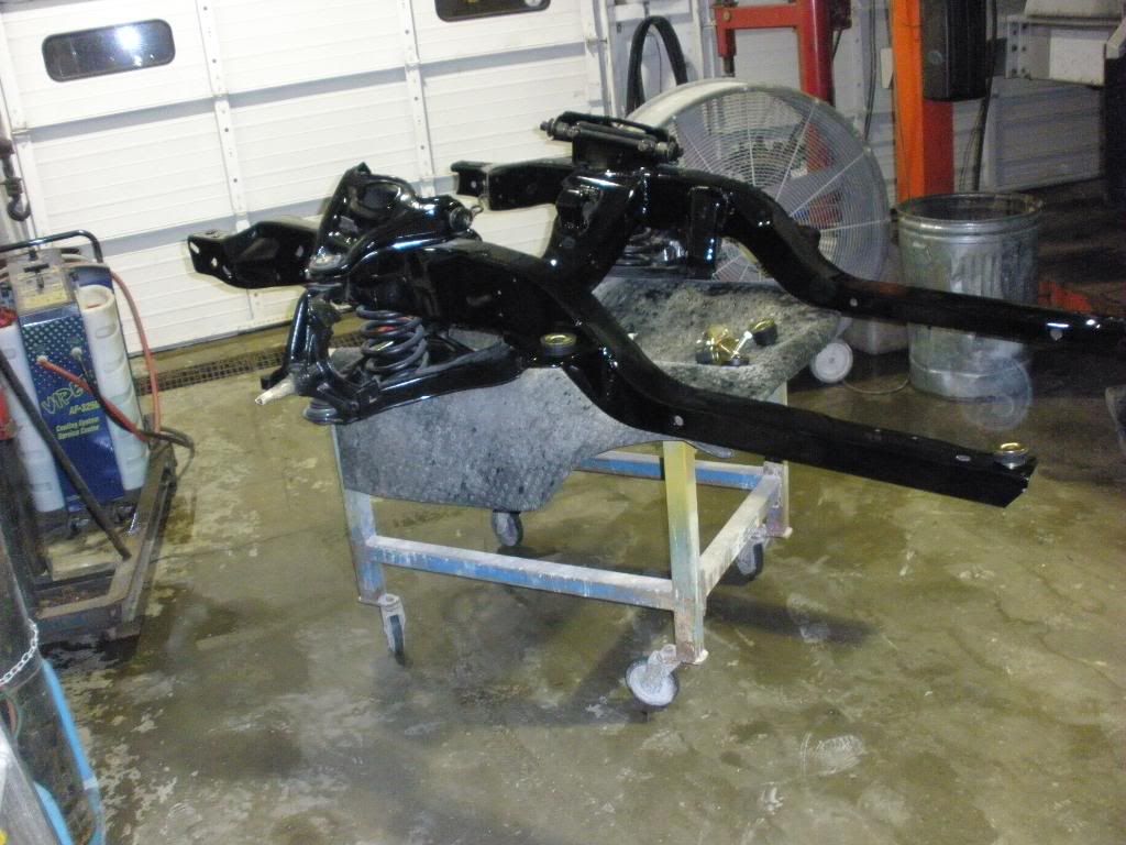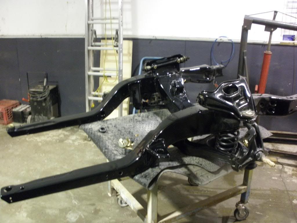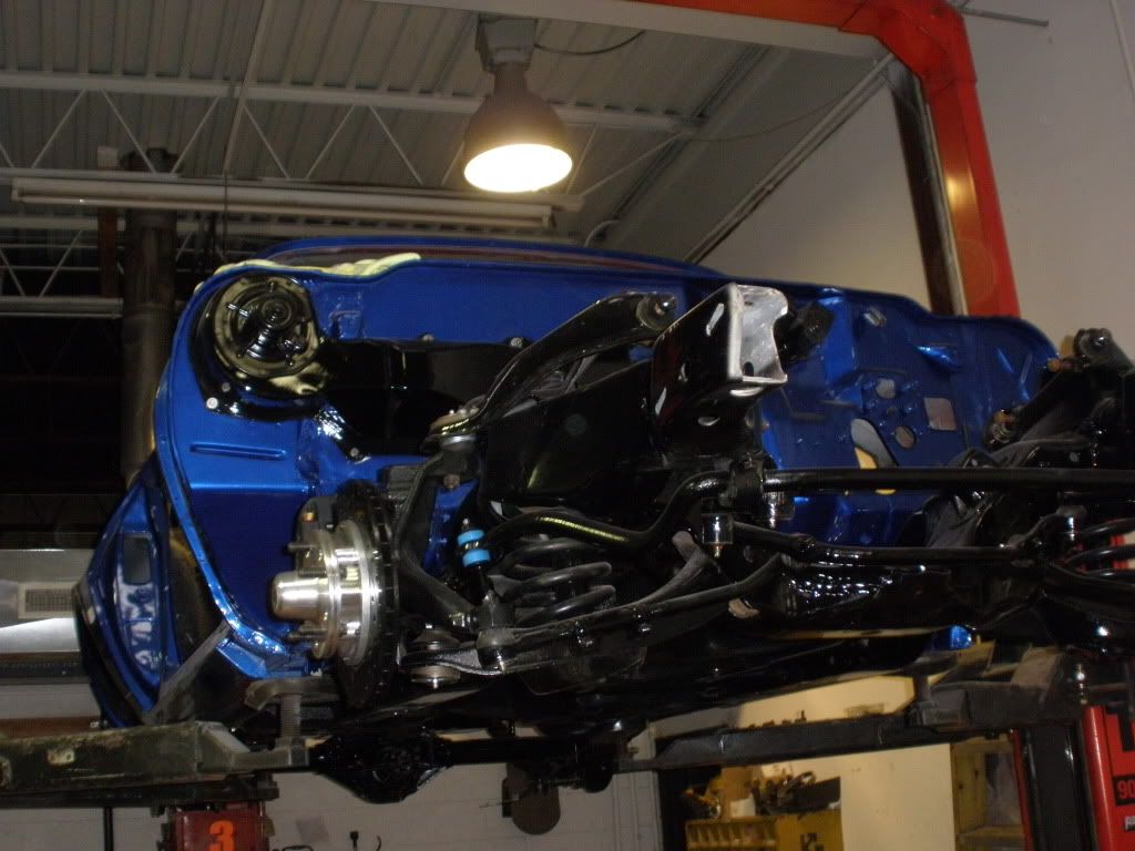 We couldnt drop the ball on the suspension, so the front sub frame was fully dissassembled, and sand blasted. Then we seam welded the whole subframe, and smoothed it all out. After that it was time for reassembly, we installed all polyurethene bushings throughout, and bolted it into the car. http://i862.photobucket.com/albums/a...ro/car2049.jpg