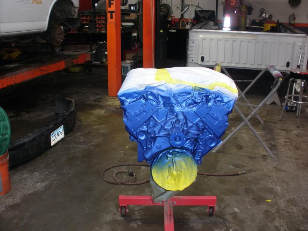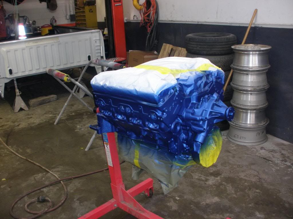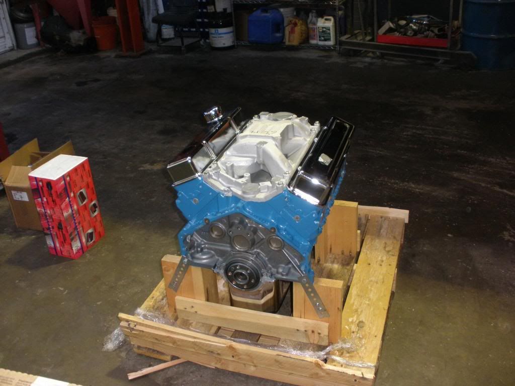 After that, We got a nice big package in the form of a 450+ Hp 383.. But frankly the engine color wouldnt match the theme of the car... Sooo we stripped it down and painted it body color and added our own dress up items and dropped it inbetween the frame