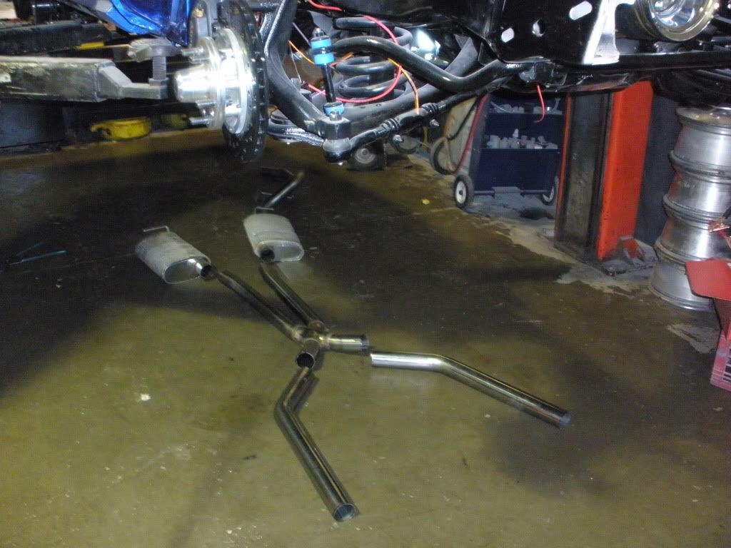 Then we got our 4 speed rebuilt, painted and detailed that, and installed it with a scattershield painted body color, and installed our hooker coated long tubes. Then it was time to fabricate our exhaust. http://i862.photobucket.com/albums/a...ro/Cars449.jpg