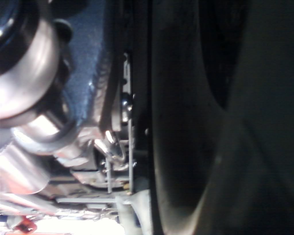 Here are some pics I just took with my camera phone with the car on the lift. *camera phone so sorry for the low quality* The only time this tire rubs on the inside is on steep driveway transitions. There is about .5" clearance on the outside http://i41.photobucket.com/albums/e2...phone/0_01.jpg This one came out really dark but this is the inside clearance which is about .75". http://i41.photobucket.com/albums/e2...phone/0_03.jpg This is the clearance of the bars and brackets. http://i41.photobucket.com/albums/e2...phone/0_02.jpg This one shows our coilover crossmember and how much the rail was notched. http://i41.photobucket.com/albums/e2...phone/0_04.jpg |