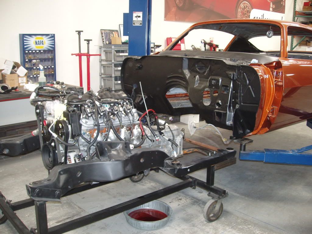 I got my motor in this week from Cleveland Pick a Part for a 71 Camaro we have been working on here @ the shop :D... We just got the motor loaded between the frame rails.. We will be loading the sub-frame on the body to see where we will be having to cut the transmission tunnel. We will start the design of new motor mounts mid next week with trans support.. Got some new suspension ideas coming for this build!!