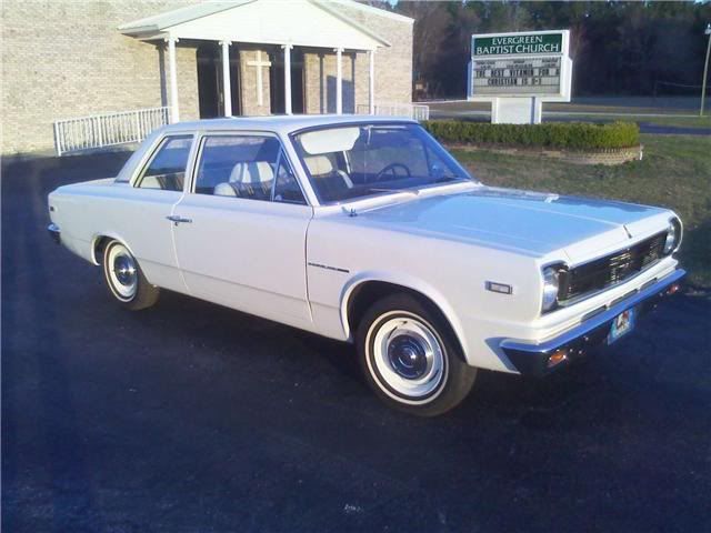 I will show you my next ride. 69 rambler american, rechromed trim and bumpers, all glass reasealed.repainted. Box stock 199 ci 3 spd on the column. New carpet ,seats recovered, owned by the same guy for about the last 30 yrs. All the paper work from new, mint. Only reason i knew what a rambler was because of this car.13 plus years ago i dated his daughter and he was painting it at that time. I ran into him at my new job. Asked about the car, he said i have it and if you want it , its yours for 2k....DOH!!!!!! http://i907.photobucket.com/albums/a...69rambler3.jpg and http://i907.photobucket.com/albums/a...69rambler2.jpg Ive worked a deal with him and should be getting it in a couple weeks I thought i would share...I know it needs wheels and ???? Tom |