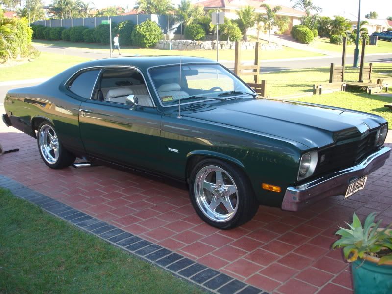 I had been working on a 65 Falcon hardtop for some three years before the restrictions on doing what I really wanted became to much of an obstacle http://i75.photobucket.com/albums/i2...A/DSCN0481.jpg http://i75.photobucket.com/albums/i2...A/DSCN0812.jpg so sold it and moved onto the next project. A 1974 Plymouth Duster. Had been looking at a Pontiac hardtop until I layed my eyes on this sitting in the shadows. I had never seen or heard of these before and found they are as rare as rocking horse poop in Australia. This one has newish paint, no rust and is straight as. http://i75.photobucket.com/albums/i2...A/DSC01475.jpg http://i75.photobucket.com/albums/i2...A/DSC01473.jpg http://i75.photobucket.com/albums/i2...A/DSC01477.jpg Unfortunately I only had the car a week before the motor spun a bearing and needed replacement. Now the next step will be sorting the suspension now with 17 and 18 inch rims and modern rubber underneath. After a couple of performance oriented toys this one will need a lot of work to improve the handling and then the bench front seat will need to go, dont want to be sliding over to a right hand drive inadvertently:D Any suggestions on suitable mods would be appreciated as the information base and suppliers over here is very limited, I get a lot of blank expressions when I mention the car and even stranger looks when people clap eyes on it.:cheers: |