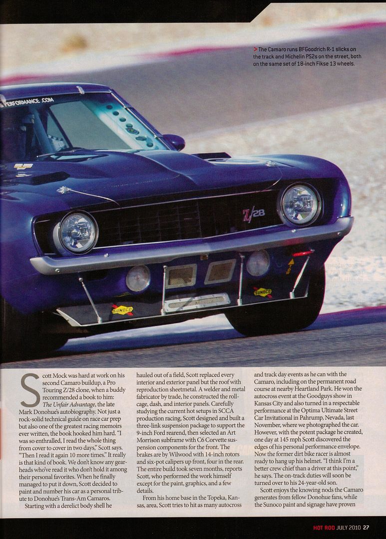Wow i think Scott might have mentioned it, but maybe not........anyways just got the new Hot Rod magazine and Scotts got a nice 2 page spread on his camaro :thumbsup: