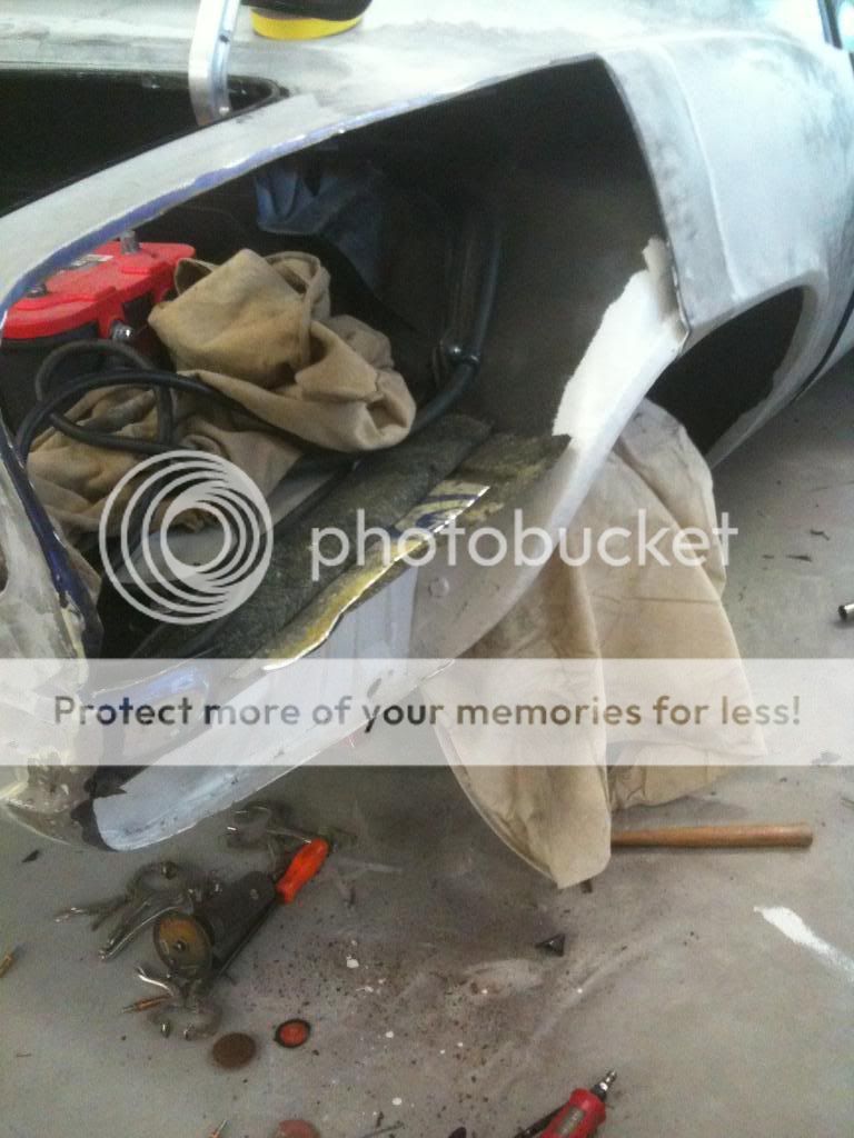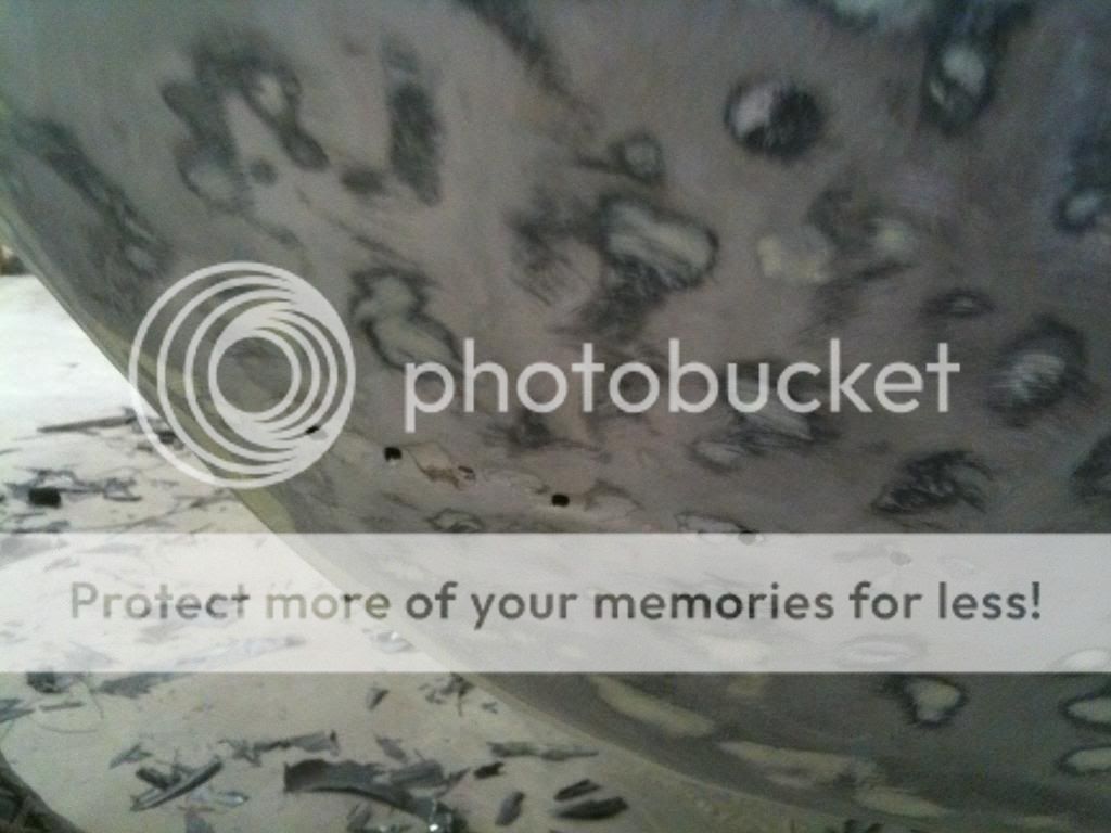 http://i370.photobucket.com/albums/o...o/IMG_1264.jpg http://i370.photobucket.com/albums/o...o/IMG_1265.jpg http://i370.photobucket.com/albums/o...o/IMG_1267.jpg Once the mud was stripped I found spots in the quarter where the body shop had ground right through the metal :( and then just covered up the holes with filler! no wonder the paint was already cracking http://i370.photobucket.com/albums/o...o/IMG_1317.jpg http://i370.photobucket.com/albums/o...o/IMG_1318.jpg |