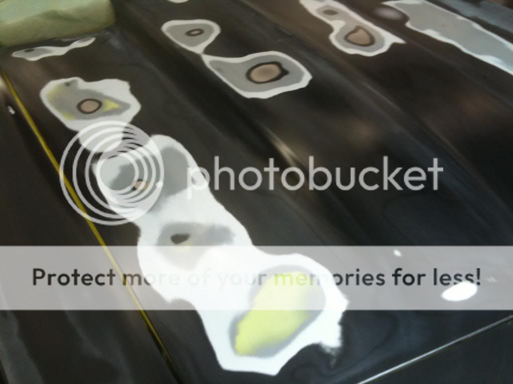 http://i370.photobucket.com/albums/o...o/IMG_1328.jpg This is the best way to describe the previous paint and body work. You can see all the layers on the hood and it still isnt straight. http://i370.photobucket.com/albums/o...o/IMG_1329.jpg http://i370.photobucket.com/albums/o...o/IMG_1330.jpg So now the polyester primer to seal it all up http://i370.photobucket.com/albums/o...o/IMG_1333.jpg |