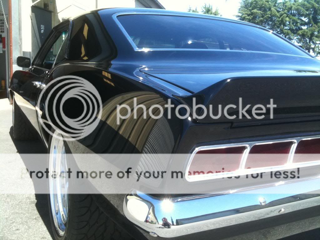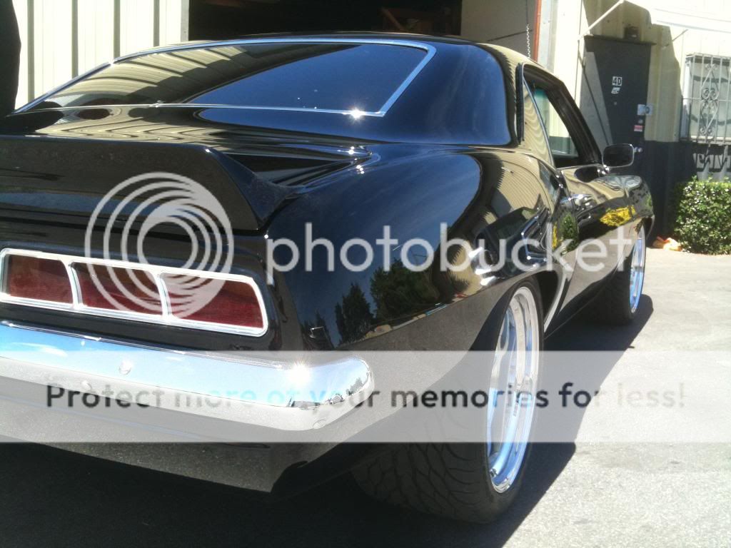 Just thought I would post up some pictures of the 69 Camaro that we just finished a complete repaint on. The car was built by Rich Bermea at Road Touring Customs in Gilroy CA and the build is amazing except for the paint which was originally done by a local body shop in Gilroy. The owner Eric loved everything about the car expect the poor body & paint. The paint on the p/s quarter panel had already begun to crack just a few weeks after it was delivered back to RTC to be assembled. The body panel were not straight and they had only cut the car with 2000 grit before buffing. So I was contacted to see what could be done to fix the poor body and paint. I picked the car up on may 4th and began stripping the p/s quarter to see why the paint and filler had already begun to crack. There was 3/8" thick filler on the quarter and in spots it was over 1/2" thick in spots.
