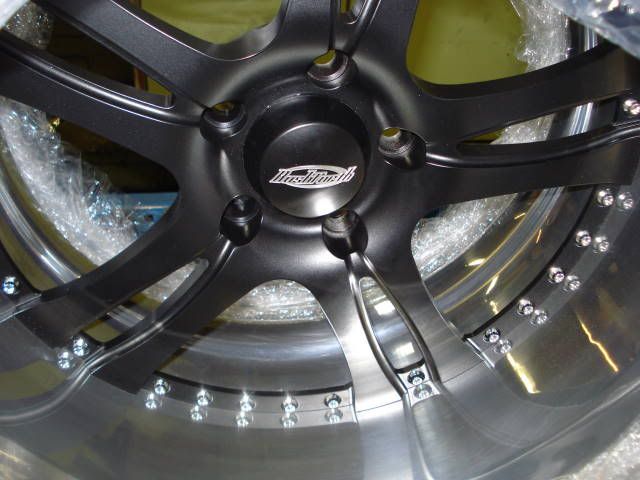 Matte black centers with polished hoops in a nice basic fitment that will fit a lot of cars. Retail for powdercoated 17s: $2250. We can ship these tomorrow for $1875 + shipping. If you like these but they aren't quite right for your application, give us a call and we'll quote you for whatever you need. 17x8/ 4.75" BS/ 5x4.75 Bolt Pattern 17x10/ 5.5" BS/ 5x4.75 Bolt Pattern http://i256.photobucket.com/albums/h...s/DSC01864.jpg http://i256.photobucket.com/albums/h...s/DSC01863.jpg http://i256.photobucket.com/albums/h...s/DSC01862.jpg http://i256.photobucket.com/albums/h...s/DSC01861.jpg |