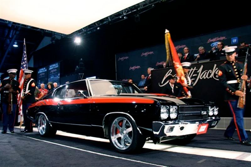 Route 66 Motorsports recently finished a 1970 Chevelle, which is the third in a series of souped-up muscle cars built for charity. The Armed Forces Foundation helps and supports the families of injured veterans. The top seller in Barrett-Jackson's first Orange County auction on Saturday was this very special 1970 Chevy Chevelle. Built by Route 66 Motorsports and chronicled by Super Chevy Magazine, it's known as the Project American Heroes Chevelle, and it brought a cool quarter of a million bucks for the Armed Forces Foundation. The car itself is a 1970 Chevelle, with an intercooled, supercharged GM Performance Parts LSA engine where you might expect to see an LS5 or LS6 big block. Detroit Speed & Engineering did the suspension, the binders are Baer's new "6P" brake system, power is routed through a TCI Automotive 6x 6-speed 4L80E transmission, and the end result of these and about 30 other component contributors is one badass Chevelle that sold for $250,000 on Saturday afternoon. Take a look at some pictures below to see some shots of this very special Chevy on it way to the auction and at Barrett Jackson. For pictures of the complete build please visit Route 66 Motorsports Website. www.rt66motorsports.com http://i602.photobucket.com/albums/t...017Medium2.jpg http://i602.photobucket.com/albums/t...4545Medium.jpg http://i602.photobucket.com/albums/t...4548Medium.jpg http://i602.photobucket.com/albums/t...4552Medium.jpg http://i602.photobucket.com/albums/t...4555Medium.jpg http://i602.photobucket.com/albums/t...4688Medium.jpg http://i602.photobucket.com/albums/t...4580Medium.jpg http://i602.photobucket.com/albums/t...4575Medium.jpg http://i602.photobucket.com/albums/t..._2_623x600.jpg |