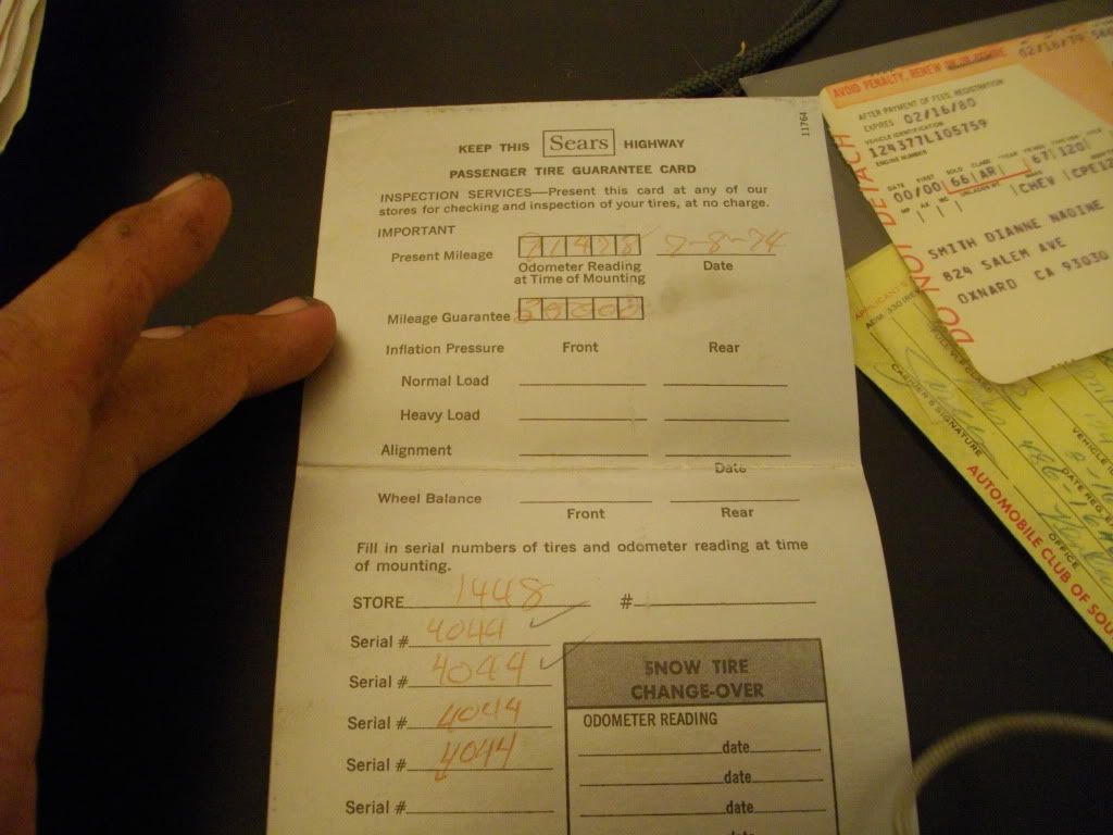 http://i279.photobucket.com/albums/k...p/IMGP1294.jpg http://i279.photobucket.com/albums/k...p/IMGP1295.jpg http://i279.photobucket.com/albums/k...p/IMGP1296.jpg http://i279.photobucket.com/albums/k...p/IMGP1297.jpg http://i279.photobucket.com/albums/k...p/IMGP1298.jpg http://i279.photobucket.com/albums/k...p/IMGP1299.jpg Years of gas records..... http://i279.photobucket.com/albums/k...p/IMGP1304.jpg http://i279.photobucket.com/albums/k...p/IMGP1308.jpg http://i279.photobucket.com/albums/k...p/IMGP1309.jpg A bunch of service records too and the original Pink slip... |