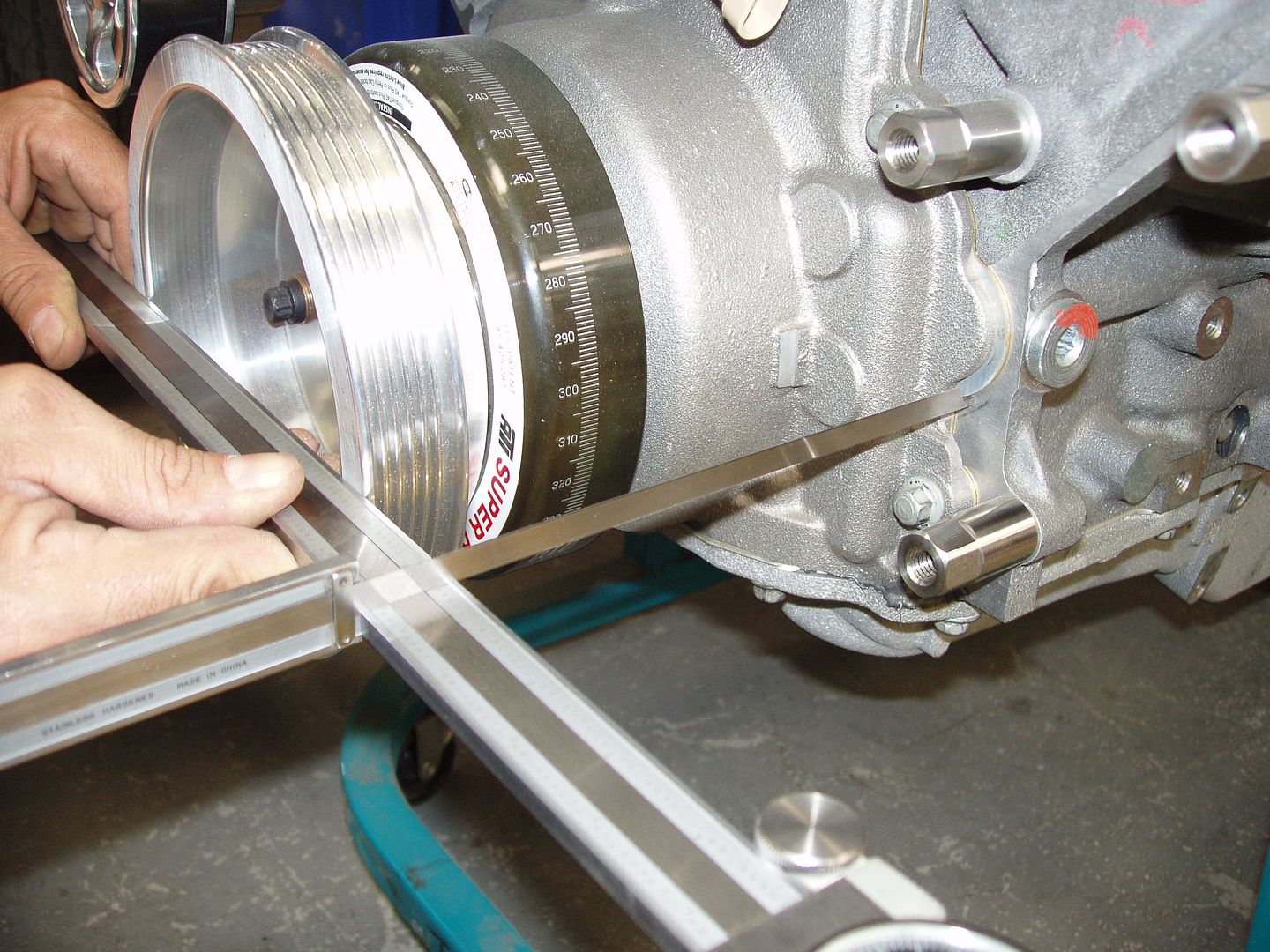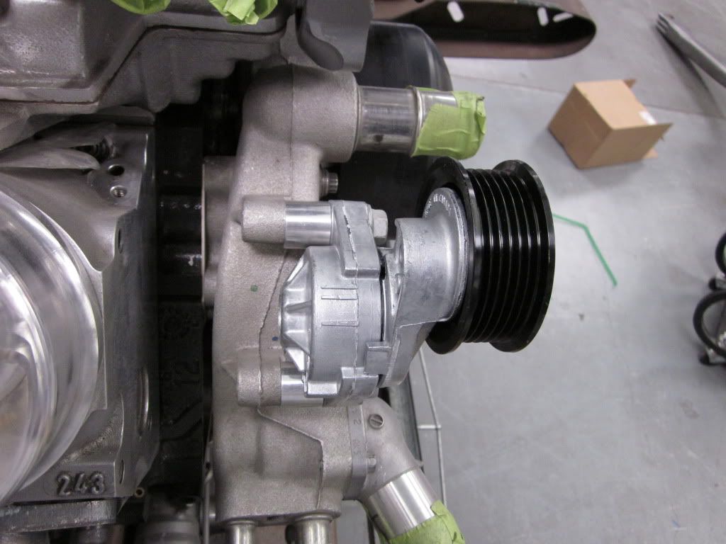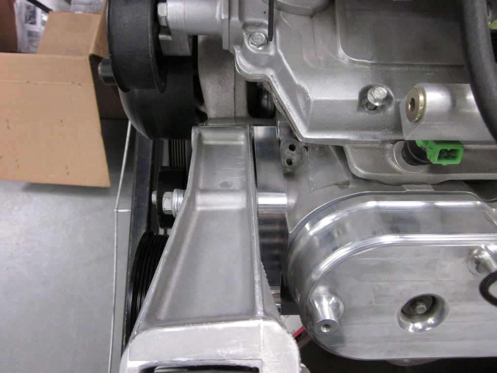 I will have more information as I use these systems on builds here @ the shop.. Here we have a LQ9 motor that has a harmonic balancer,water pump, & supercharger for a LS2 2006 GTO that I purchased for a car here @ the shop.. The iron block does not have all the necessary bolt holes for the alternator brackets so this is what I did.. I purchased a LS Corvette track system from Pace Performace without the A/C compressor ( part #19155167) cause it holds the alternator & P/S on one bracket that mounts on the cylinder head.. but the LS2 track system sits about 3/4 out on the harmonic balancer.. http://i1015.photobucket.com/albums/...n/IMG_0280.jpg So I measured it up & machined a spacer that mounts behind the alternator/power steering bracket to get proper belt alignment.. http://i1015.photobucket.com/albums/...n/IMG_0279.jpg http://i1015.photobucket.com/albums/...n/IMG_0282.jpg We also had to machine some spacers for the belt tensioner.. http://i1015.photobucket.com/albums/...n/IMG_0281.jpg http://i1015.photobucket.com/albums/...n/IMG_0283.jpg Here is the final assembly with belt system.. http://i1015.photobucket.com/albums/...n/IMG_0284.jpg I really like using the LS Corvette Sepentine System because it mounts the alternator high & helps with trying to fit everything low.. I will be using this kit & making components to make them fit on other LS track systems.. I have a L99 out of 2010 Camaro that is next which pushes it out about 1.25 & needs to run the alternator high because it is on a 2nd gen Camaro that runs the steering box in front.. keep you posted! |