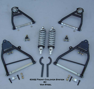 ULTIMATE 63-82 Corvette Suspension & Steering Package Lets start with the rear 63-82 Rear Coilover Conversion Kit - Small or Big Block - Double Adj Shocks Attachment 26010 63-82 Rear Coilover Conversion Kit - Small or Big Block - Double Adj Shocks Offset Trailing Arms w/Poly Bushings - Powder Coated Black QA1 Double Adjustable Shocks 500# or 600# Hyperco Coil Springs 2 Upper Reinforcement Brackets Eliminates Rear Leaf Spring Spanner Wrenches There are a lot of benefits to coilovers apart from the obvious ease of spring swapping and ride height adjustment, but they are important benefits as spring and shock tuning allows you to set up the suspension to suit your car much better than with any other system. The spring coiling the shock means that the shock and spring operate at the same rate regarding the wheel rate. This makes it easier to understand why a change in one has a certain affect. Also, placing the coilover closer to the axis center line will have a spring & shock rate closer to the wheel rate. This enables you to respond quicker to the wheel movements and it's more sensitive to smaller movements. Furthermore the shock is more rigidly mounted for maximum durability of the package. The spring’s rate is designed to optimize the suspension movement very closely. Then there's the benefit of the shocks being rebuild-able, re-valve-able and generally much higher quality than OE shocks. Furthermore the coilovers give absolute true independence and allow you to fine tune the rear suspension much closer. Unlike the transverse leaf which reduces the true independence. With a turn of a knob you can make the shock stiffer for track days and soften them to hit the street for ride comfort. This kit was not designed just for racers by any means. It was designed for the personalization and the uniqueness of the design, to be cost effective and to increase spring rates to customize the ride and handling of their Corvette. http://www.xplosiveperformance.com/C...s-_c_5652.html Now The Front Attachment 26011 63-82 Tubular A-Arms W/Coilovers Double Adjustable 450# or 550# Springs- Car Set 4 Light Weight Tubular A-Arms 2 QA1 Coilovers Shocks 2 Upper Shock Mounting Brackets Spanner Wrenches Complete With Ball Joints Uppers • 6 Degrees Positive Caster for Improved Highway Stability • Light Weight, Super Strong Chromoly Steel Construction • Delrin Bushings • Gloss Black, Long Lasting Powder Coat Finish • Pre-Assembled • Van Steel Limited Life Time Warranty Lowers • Light Weight, Super Strong Tubular Chromoly Steel Construction • Designed For the Semi-Coil Over Spring Conversion • Delrin Bushings • Gloss Black, Long Lasting Powder Coat Finish • Pre-Assembled • Van Steel Limited Life Time Warranty Van Steel, an industry leader in Corvette Suspension and Brakes, has ready for delivery, light weight, front upper control arms for the 1963-82 Corvette. Realizing most Corvettes drive on radial tires, Van Steel has designed this arm with 6 degrees of positive caster for premium highway stability. Now for the steering http://www.xplosiveperformance.com/S...es_c_6440.html Attachment 26012 Corvette Steeroids - Feel The Road! Steeroids™ Offers Improved Steering Feel - Recirculating ball steering is vague and unresponsive, especially "on center". Control is greatly enhanced. Steeroids Offers Quicker Ratio -Steering racks offer quicker ratios. Steeroids™ power kits yield approximately 2.5 turns lock-to-lock (~2.9 for manual). Steeroids are the only kits with adjustable tie rod ends to prevent bump steer - keep your car grounded and avoid darty behavior by keeping your alignment (bump steer) curves in check. Steeroids Are Lighter Weight -Compared to the stock steering system. Steeroids Offer Bolt On Installation -Absolutely no welding, or drilling. Installs with basic hand tools in approximately 3 hours. Stock Pump Used -Existing or readily available power steering pump and brackets can be used. Steeroids Come As A Complete Kit -All necessary parts are included with the exception of the power steering pump. Parts Included With Steeroids: Rack and pinion Adapter brackets (powder coated black) Adjustable tie rod ends (Self cleaning & lubricating, teflon lined). U-joint assembly Power steering hoses Misc. fasteners (grade-8) *****Note****** If you are converting your C2 Corvette from manual steering to power and need everything to switch over, give us a call or send an email. We offer everything required to convert from manual to power steering. Kits include the power steering pump and mounting brackets, the upper pump pulley and lower crank pulley (if needed). Kits vary in pricing, but are usually around $400.00, so contact us to learn more! GET THIS COMPLETE PACKAGE READY TO INSTALL Retail $5144.98 Your Price $4591.95 Savings of $553.03 off retail Purchased as this package this is an additional $200.00 savings if you purchased individually at our already low prices TO ORDER THE COMPLETE PACKAGE YOU MUST PM US OR CALL US TOLL FREE @ 888.493.8041 When ordering use Promo code Lateral-g |