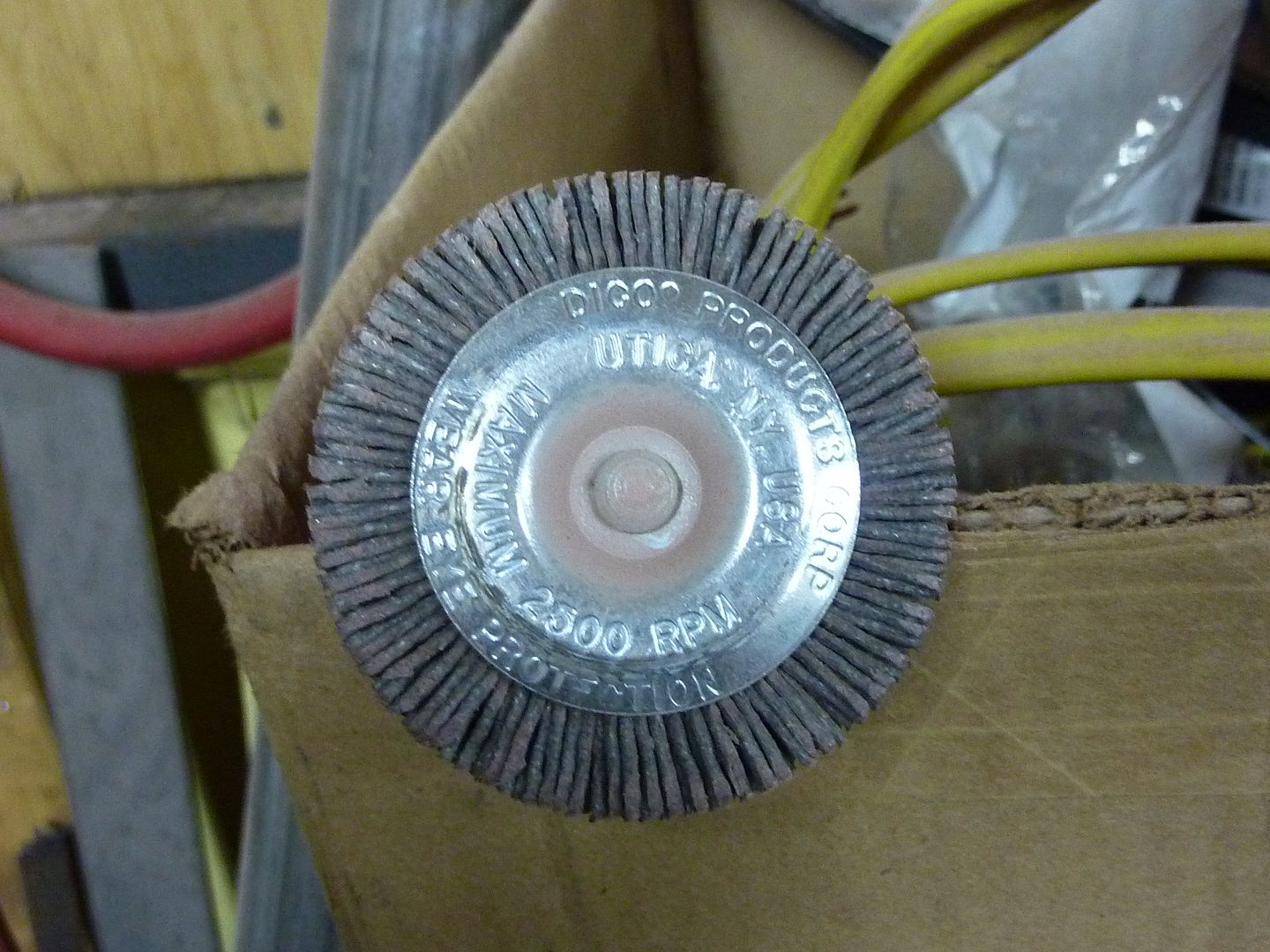 http://i222.photobucket.com/albums/d.../PICT00554.jpg The other thing I'm using is a Nyalox wire brush. Both the 3M and the Nyalox fit onto my air die grinders so are easy to use. http://www.summitracing.com/search/b.../?autoview=SKU This one's warn down some already http://i222.photobucket.com/albums/d...9/P1000531.jpg There are several ways to strip the car. I found this has worked well for me doing it in my garage at home. |