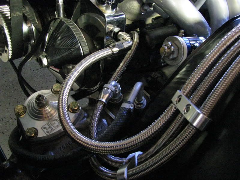 I also made up a different low pressure return line from the Hydroboost back to the power steering pump reservoir. I made it longer to run it more forward away from the heat of the #1 cylinder header tube. http://i145.photobucket.com/albums/r...t/IMG_3087.jpg http://i145.photobucket.com/albums/r...t/IMG_3086.jpg http://i145.photobucket.com/albums/r...t/IMG_3094.jpg http://i145.photobucket.com/albums/r...t/IMG_3093.jpg http://i145.photobucket.com/albums/r...t/IMG_3068.jpg |