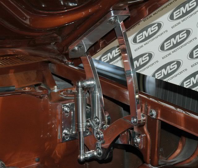 Our latest billet hinge fits a 1961 Impala. Direct bolt on, no mod's. Of course, CNC machined in house, sealed bearings and hardware, and gas strut. Prices starting at $600 machined finish. Also available polished or custom colors.