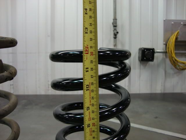 Here are the results: "Stock 24 yr old spring Height" = 14-1/8" Tall http://i17.photobucket.com/albums/b9...DSE/DSE017.jpg DSE Front 2" drop spring Height = 12-1/16" Tall http://i17.photobucket.com/albums/b9...DSE/DSE018.jpg NOTE: Although the DSE springs are considerably lower prior to going in the car. The ride height only dropped 7/8" inch! OLD "Front" Ride Height = 25.5" (measuring from ground to fender lip). New DSE "Front" Ride Height = 24 5/8" (Measuring from the exact same place as we did for the Old ride height).. SW. |
