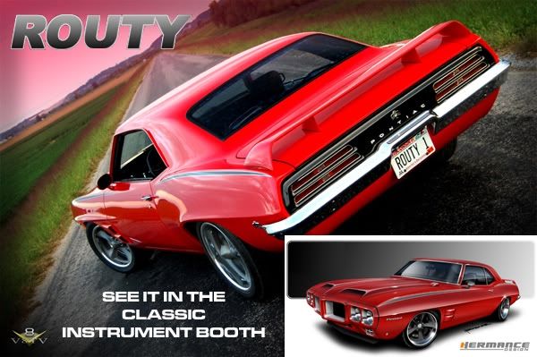 I had gone into SEMA last year thinking I had 8 going...ended up with 20 that I discovered. Who knows what this year will bring. Vacations are overrated, I usually need a vacation from vacation...especially with the dynamic duo of destruction AKA....my kids. I do a lot of work with Bushwacker (Subi STI) on their truck and now their car line. A great company to be involved with and we're really moving into some cool stuff. The turbo rims are actually still under development. They're so deep that they're difficult to machine and I don't think they made it onto Hell's TA. BTW...Mike Lavallee did the hood bird and flaming graphics on the actual car! RaMC has pix on their site. www.restoreamusclecar.com Thanks Sean, glad you like the logo upgrade...my father said he could never read my other one so I finally broke down and made some adjustments. |