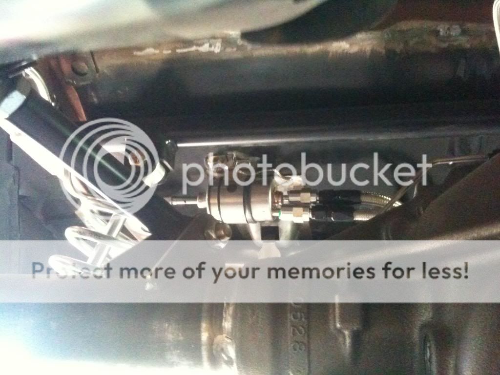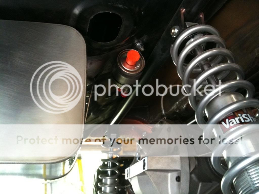 Corvette fuel filter/regulator installed with a Rick's tank and all stainless hard line.