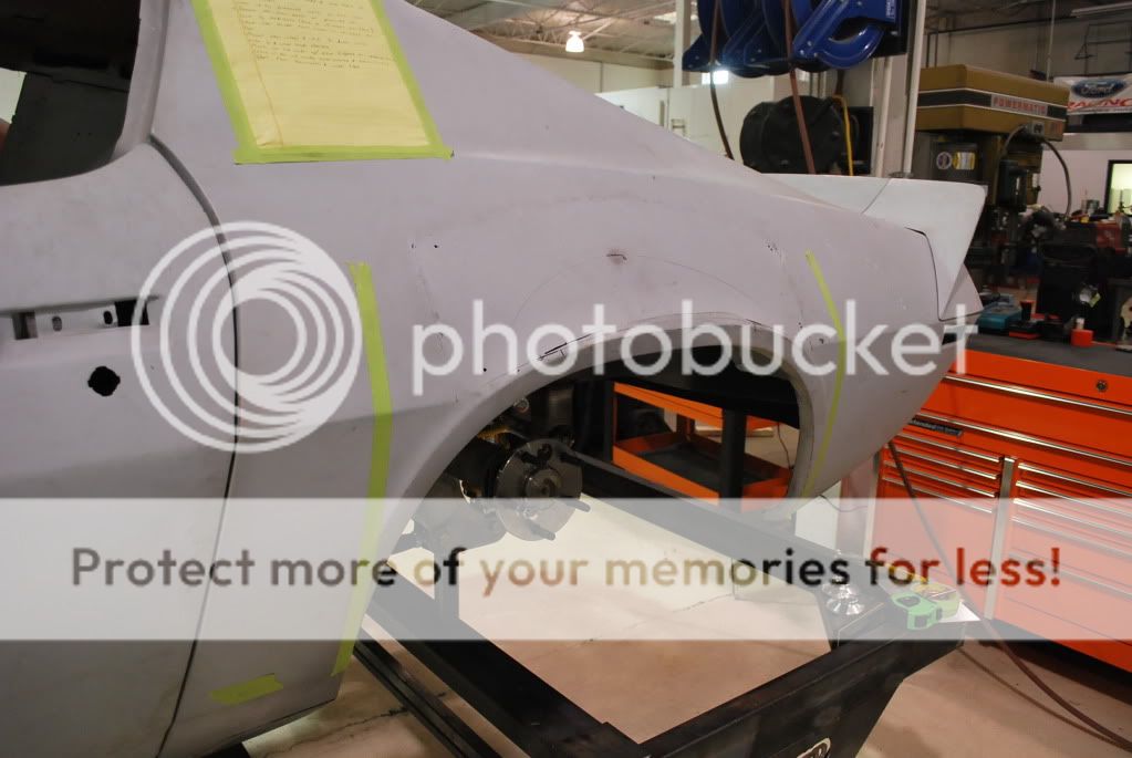 Wheel tubs were fabbed to clear the 345 rear tire. We also fabbed complete outer wheel houses to get the tires out closer to the edge of the 1/4...more on that in a minute.