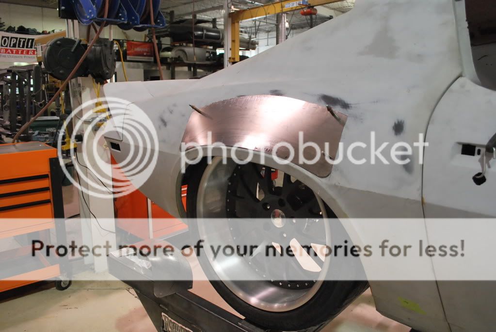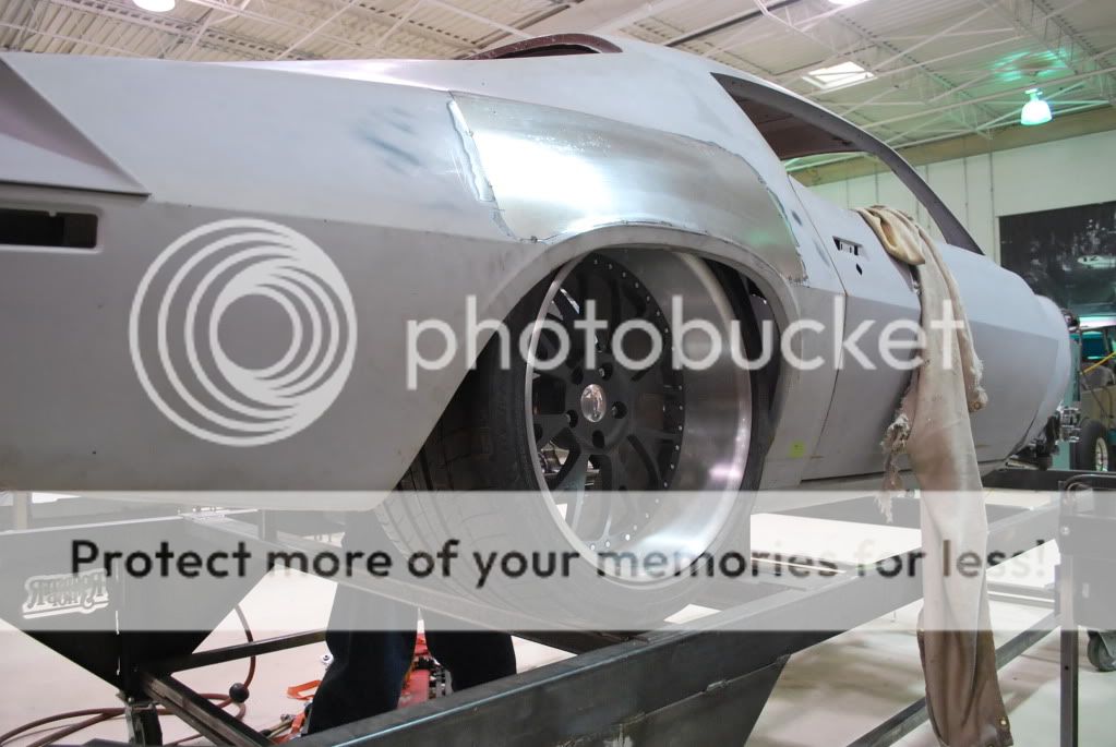 We widened the top section of the quarters to again get the wheel/tire out closer to the lip of the quarter. When we sat the car this low with such a tall tire, it ended up hitting the body unless we moved the tire inboard 2-3 inches. That made it look like a bad pro-street job, so we started to work.