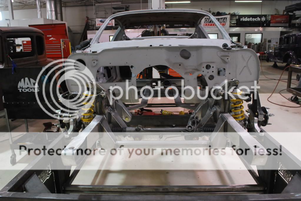 Ride Height mock ups - The goal was to get this car sitting low with larger tires than most are runing on their 2nd gens. We really like the way a 20" x12" wheel with a 28" tire looks under the back of these cars. Front will be either an 18" or 19" x 10" with a 295 tire. We were able to get a ride height of 3.75" at the front of the rocker and 4.5" at the rear of the rocker. This thing just looks bad a$$ sitting there! (The car had already been primed and the fenders painted when we received it. All of this will eventually be re-done.) http://i563.photobucket.com/albums/s...hassis/703.jpg http://i563.photobucket.com/albums/s...hassis/704.jpg Here are a few shots of the completed chassis. This is part of our new Fast Track chassis line up. We are building vehicle specific chassis for 1st and 2nd gen Camaro's, 62-67 Novas, 64-71 Mustangs, challenger/'cuda, Chevelle/GTO/A Body and a few others. http://i563.photobucket.com/albums/s...hassis/701.jpg http://i563.photobucket.com/albums/s...hassis/702.jpg http://i563.photobucket.com/albums/s...hassis/694.jpg |