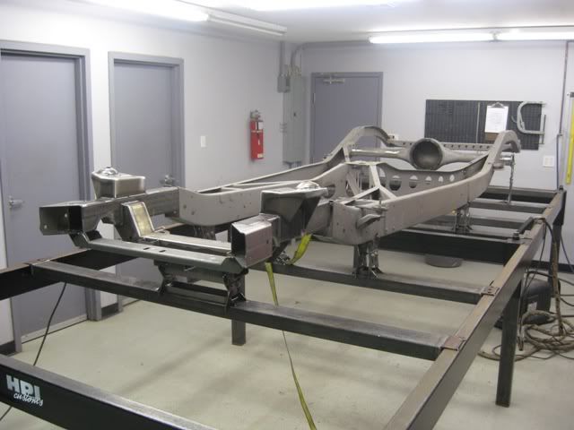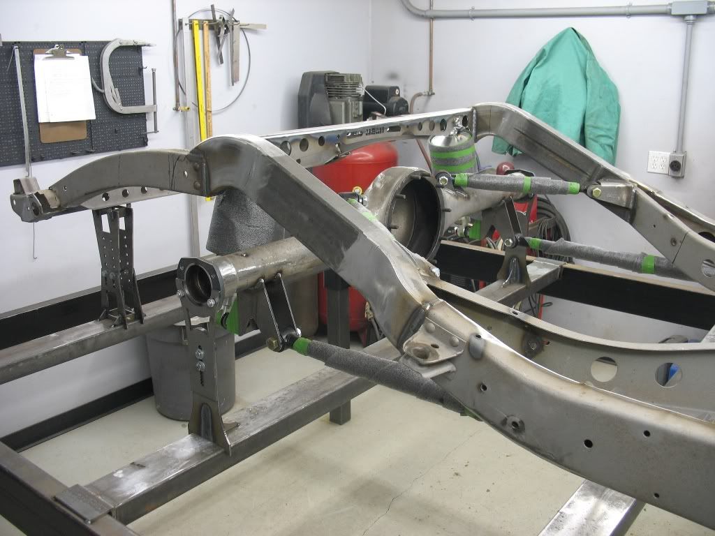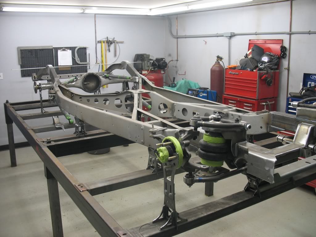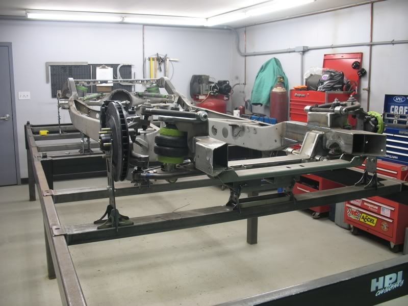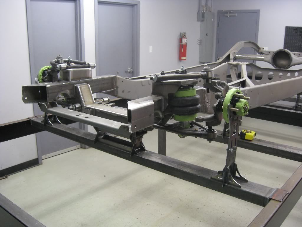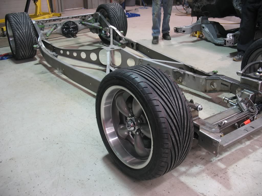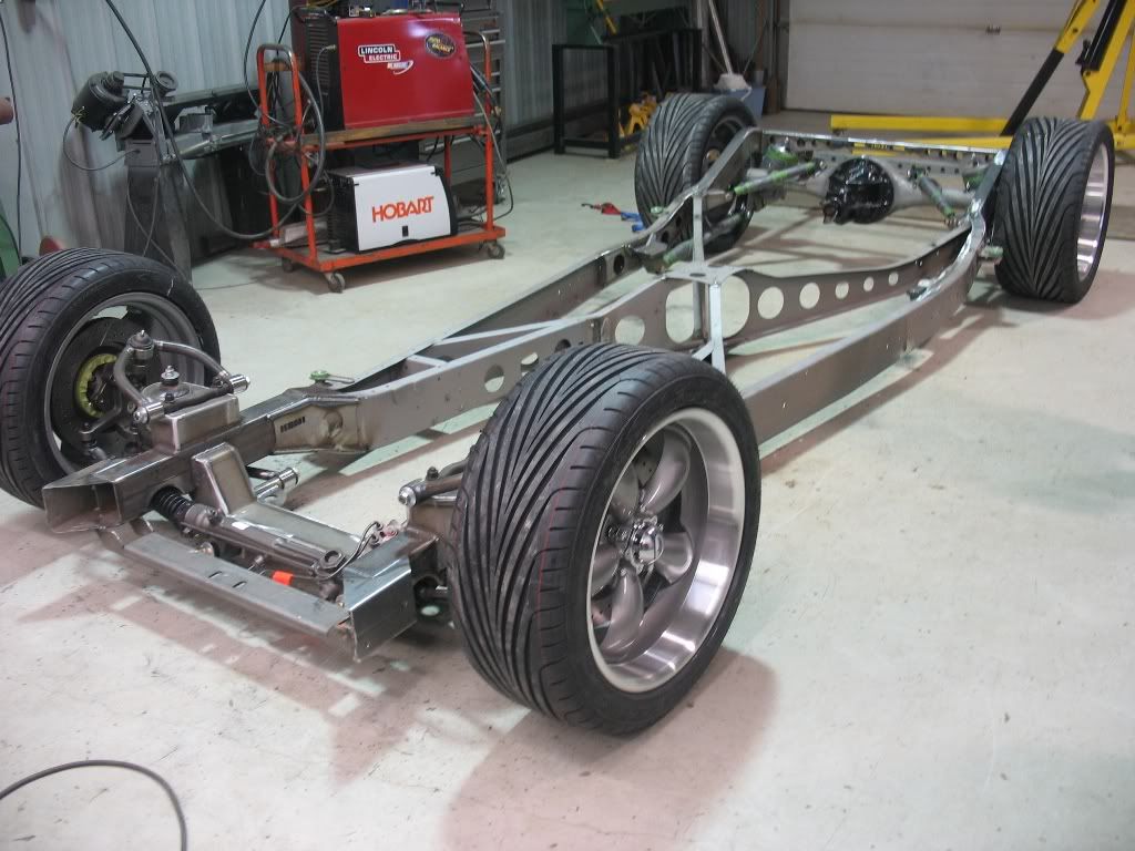 http://i1204.photobucket.com/albums/...uspension1.jpg http://i1204.photobucket.com/albums/...uspension2.jpg Front and rear brakes are Kore3 C5 stuff. The rear is interesting, its for a ford 9 inch but we made custom housing ends that use mopar axles and torino offset/bolt pattern. http://i1204.photobucket.com/albums/...metable1-1.jpg http://i1204.photobucket.com/albums/...rearbrakes.jpg Here is the frame on the ground! http://i1204.photobucket.com/albums/...edoutframe.jpg http://i1204.photobucket.com/albums/...Rod/frame2.jpg |