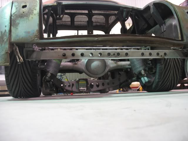 Rear suspension install. Triangulated 4 link, with all the suspension points plotted in a program to "theoretically" give us a decent roll center and traction. I'm not an engineer, but the numbers are ok.