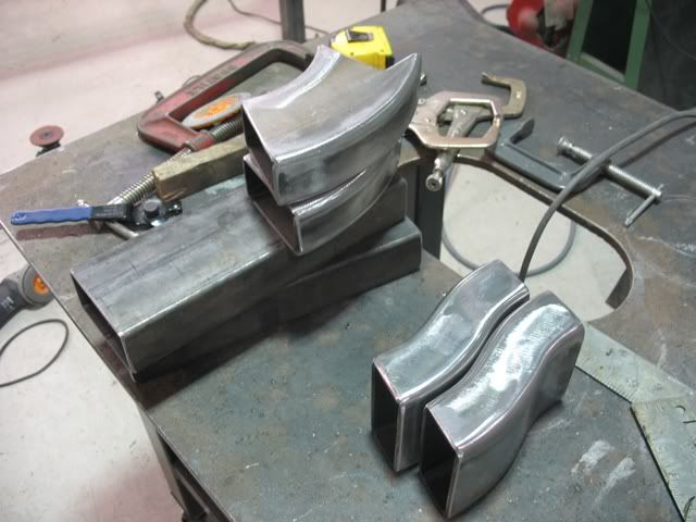 http://i1204.photobucket.com/albums/...framestart.jpg http://i1204.photobucket.com/albums/...sionmockup.jpg Here is our "bends" for the rear frame. 4 sided laser cut 3/16 welded together.... I know its not one piece rails, but we couldnt get some of these bends out of a bender, and we fishplate/gusset everything! http://i1204.photobucket.com/albums/...framebends.jpg The start of our rear crossmember with integrated exhaust mounts and shockwave mounts http://i1204.photobucket.com/albums/...rameboxing.jpg Please ignore the crappy compressor, it was humble beginnings before we could afford proper stuff!!! But here is the rear rails installed http://i1204.photobucket.com/albums/...amerailsin.jpg |