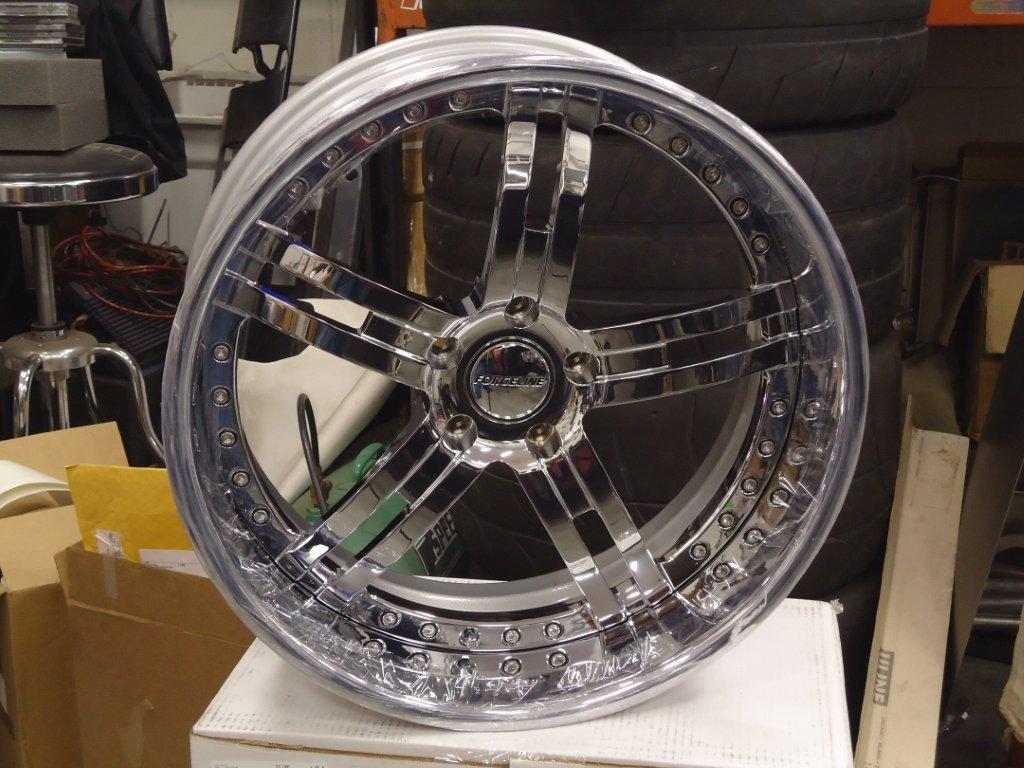 Hi everyone, just thought I would post these wheels we set up for a customer. They are the Forgeline FS3P, chrome hoop, center, chrome plated engraved center cap, & powder coated silver inner hoop.:thumbsup: Attachment 28458